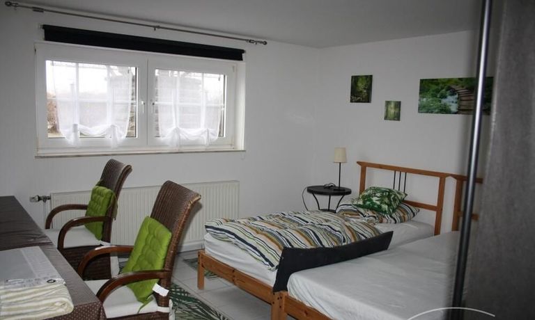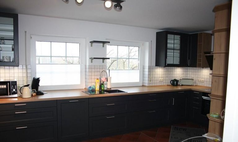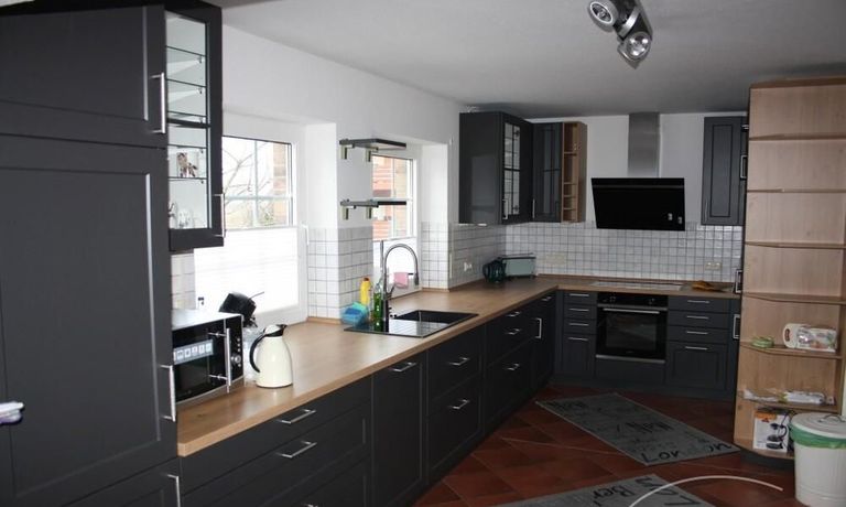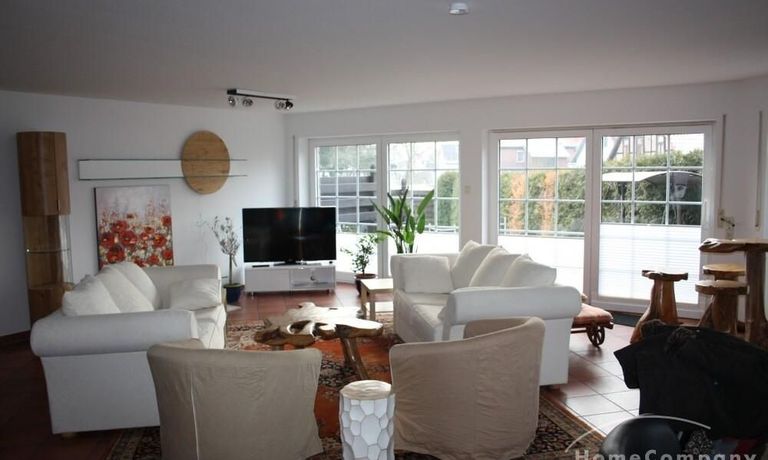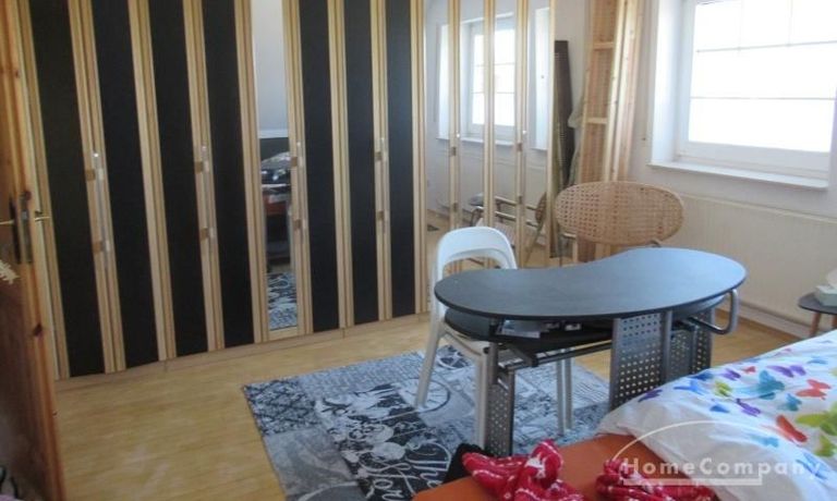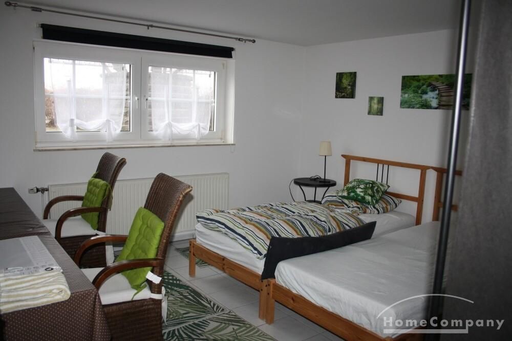 Großes, möbliertes Haus bzw. DHH (rechts), mit 8 Zimmern; saniert und renoviert, über 4 Etagen (Souterrain, EG, 1. OG), komplette, hochwertige Ausstattung. Geeignet für bis max. 8 Personen; 7 sep. Schlafzimmer möglich, 1 Zimmer kann als Doppelzimmer genutzt werden (alle Zimmer sind ausgestattet mit Bett, Schreibtisch, Schrank etc.). Im EG: 1 großes Wohn-/Esszimmer (75 qm) mit Terrasse/Garten sowie einer großen, offene amerikanische Wohnküche (mit Kühl-Gefrierkombination, Geschirrspüler etc.), 1 kl. Schlafzimmer, Gäste-WC. Im 1. OG: 1 Doppelzimmer, 2 Einzelzimmer jeweils mit Balkon, 1 Bad mit Dusche u. Wanne. Im 2. OG: 1 gr. Schlafzimmer. Im Souterrain: 1 Einzelzimmer, 1 Wohn-/Schlafraum (ca. 70 qm), 1 Bad mit Dusche sowie Hauswirtschaftsraum. Fußboden-und Zentralheizung.