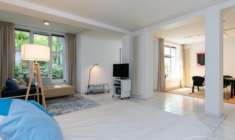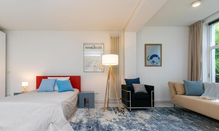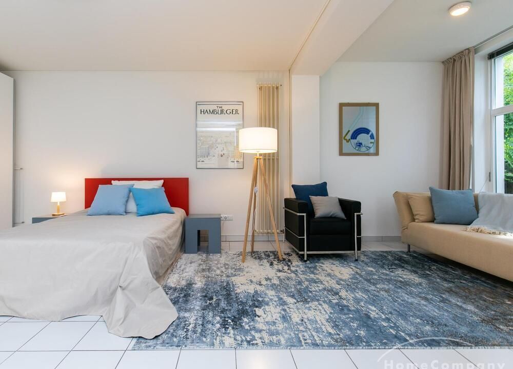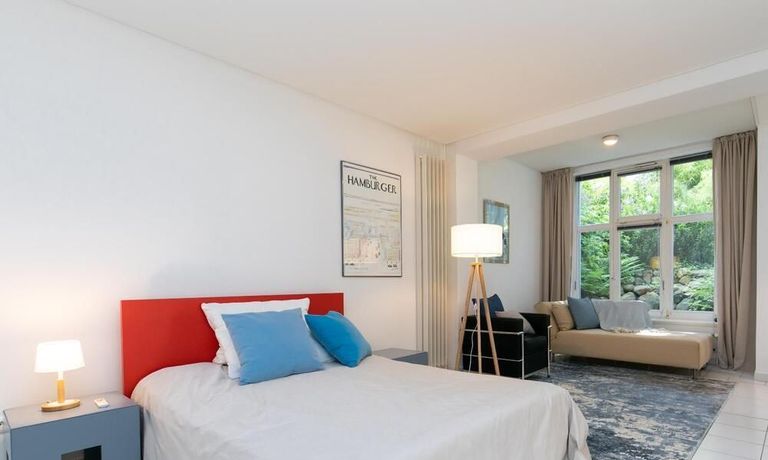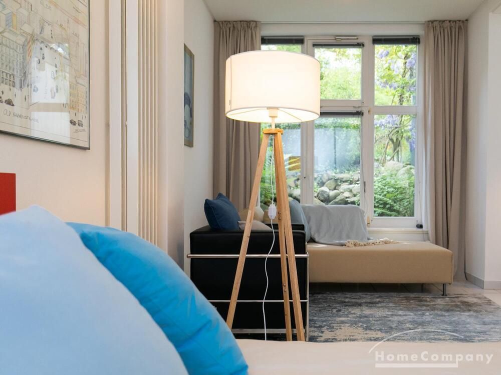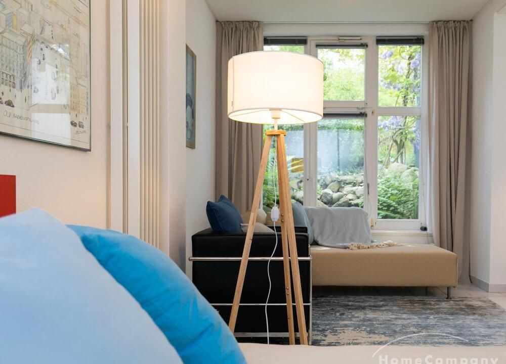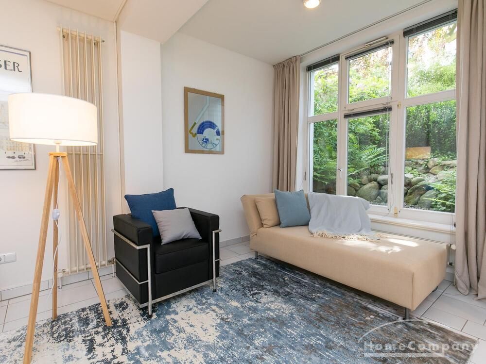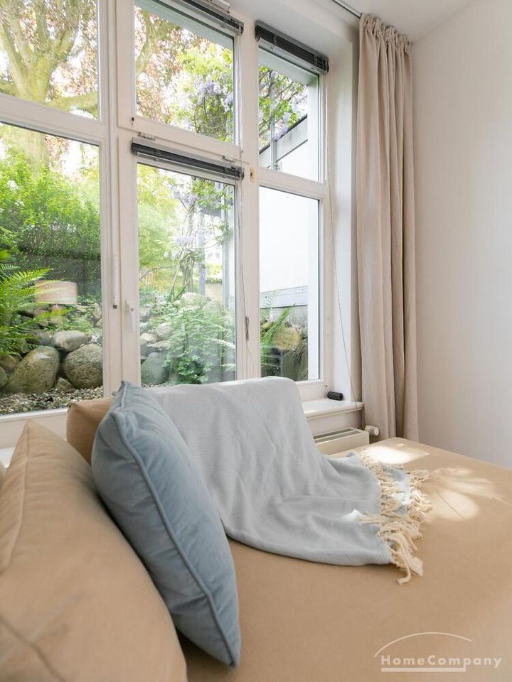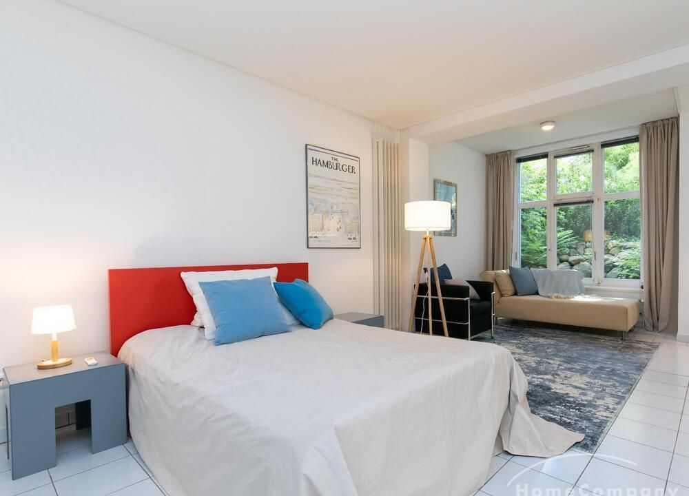 Komfortabel eingerichtete Souterrain-Wohnung im Loftstil in einer Harvestehuder Jugendstil Stadtvilla mit großen Fenstern zum ruhigen Garten. Die Wohnung hat ein modernes, helles Ambiente und ist in bester Wohn-/Adressenlage in Alsternähe (500 m zur Außenalster, 150m zum Alsterlauf) und in der Nähe der beliebten Eppendorfer und Winterhuder Einkaufs- und Gastronomieszene gelegen. Die Wohnung ist modern möbliert und mit einer hochwertigen Einbauküche sowie einem großzügigen Duschbad ausgestattet. Ein Waschtrockner steht zur Verfügung. Ein 100 cm Flachbildschirm (Kabel-TV), DVD-Player und Stereoanlage stehen zur Verfügung. Der Schlafbereich ist mit einem 1,40m breiten Bett ausgestattet.