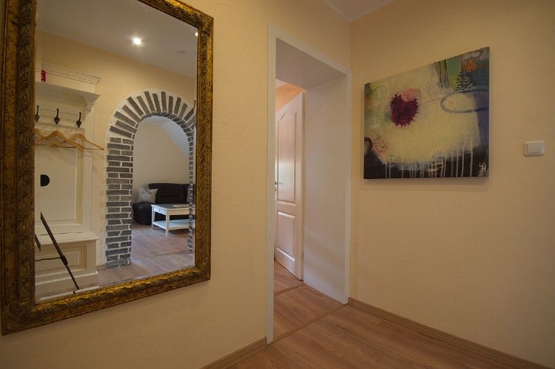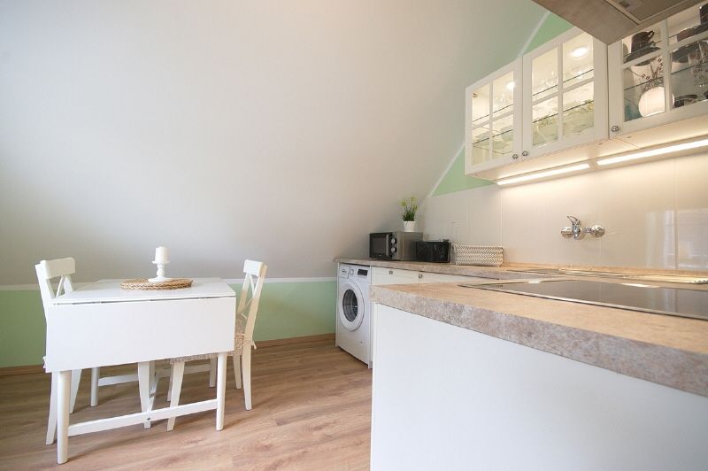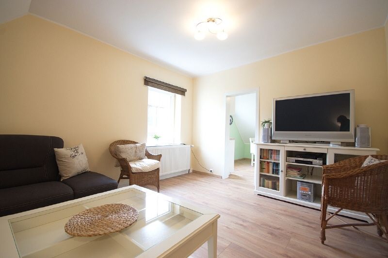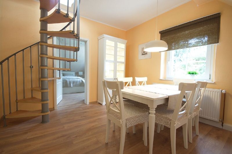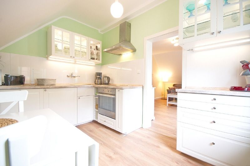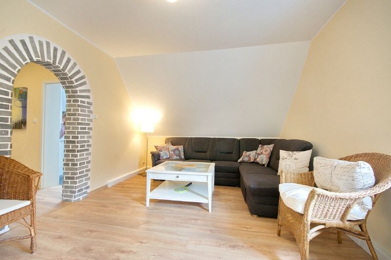 Diese geschmackvoll eingerichtete Maisonettewohnung ist sehr geräumig. Internetzugang vorhanden. Der Wohnbereich verfügt über ein Sofa, Tisch und TV-Gerät (Sat-TV und internetfähig, mit Google Chromecast-Stick). Die angrenzende Wohnküche ist komplett ausgestattet. Spülmaschine, Herd, Backofen, Kühlschrank, Waschmaschine und weitere Küchengerätschaften sind vorhanden. Zur Wohnung gehört ein separates Esszimmer, welches mit einem Tisch für bis zu 6 Personen eingerichtet ist. Das Schlafzimmer ist mit einem Doppelbett und Schrank möbliert. Im oberen Bereich der Wohnung befindet sich eine weitere Schlafmöglichkeit (1,40 m breites Bett). Eine Waschmaschine ist vorhanden.