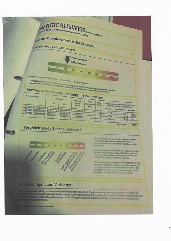 Angaben zum Energieausweis: Baujahr des Hauses: 1974, Energieverbrauchsausweis, Wert: 109,0 kWh/(m²a), Energieträger: Erdgas.