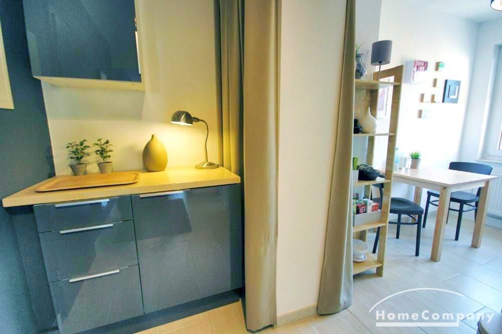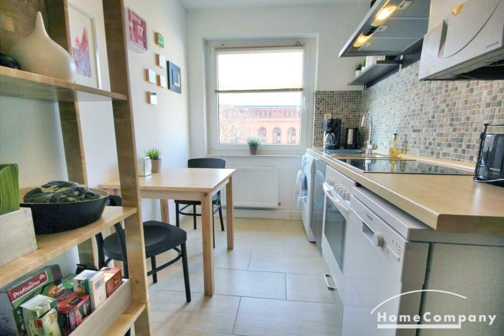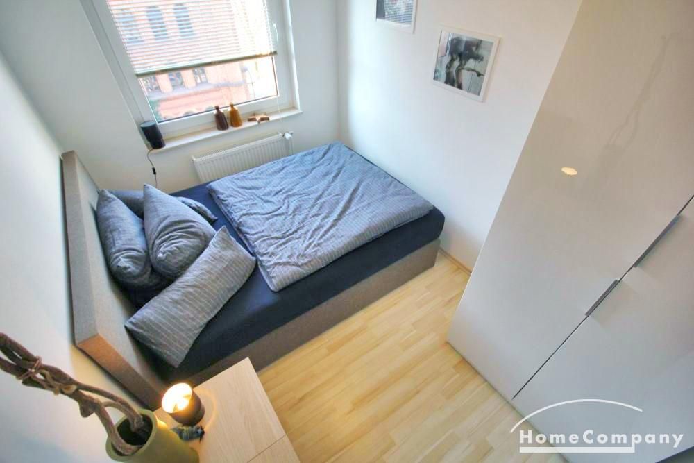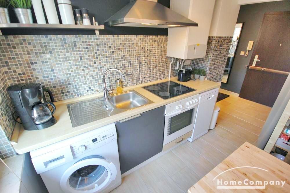 Sehr wohnlicher Schnitt mit offenem Wohnzimmer, Tageslichtbad mit Wanne, voll ausgestatteter Küche inklusive Spül- und Waschmaschine sowie gemütlichem Schlafzimmer mit 200×140 cm großem Doppelbett und Kleiderschrank. Die Wohnung ist sehr gut geräuschisoliert, sodass sich der Verkehr vor dem Haus nicht negativ bemerkbar macht.