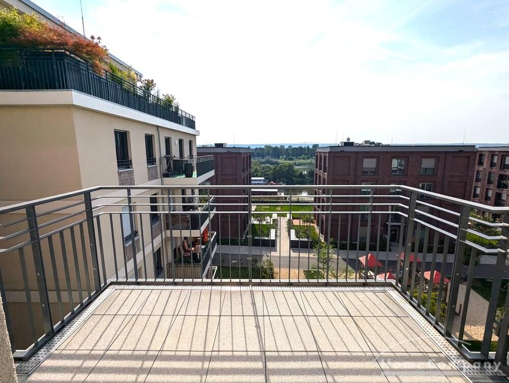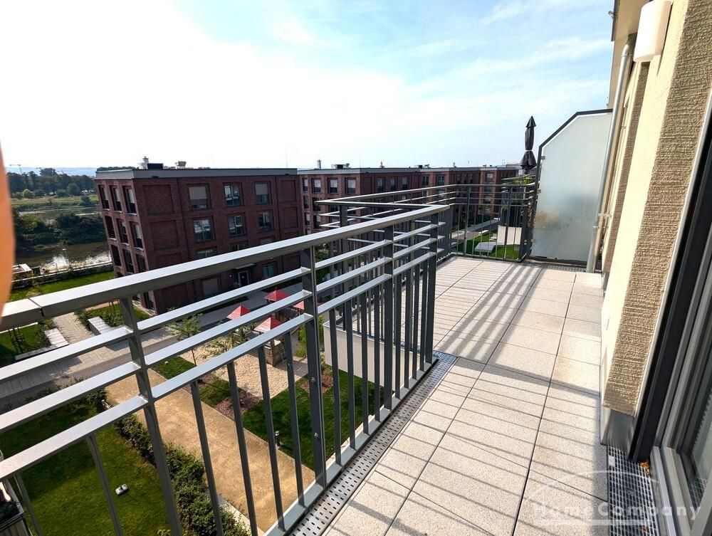 • großer Balkon Südseite mit Blick auf die Elbe und das Ostragehege