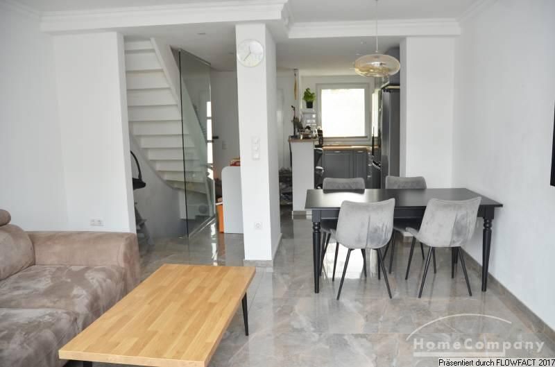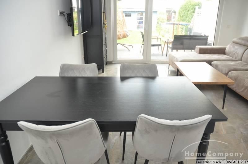 Diese tolle Haus, steht vom 01.12.2025 bis maximal zum 31.10.2026 zur Zwischenmiete zur Verfügung. Im Erdgeschoß gelangt man über einen Flur, von dem das Gäste-WC abgeht in den Wohnbereich. Das helle Wohnzimmer mit einer Couchgarnitur und TV ist offen mit der modernen Küche verbunden. Dazwischen befindet sich ein Esstisch mit 4 Stühlen. Durch eine Glastür gelangt man auf die vorgelagerte Terrasse mit dem Garten. Am hinteren Ende befindet sich ein Gerätehaus. Über eine Treppe gelangt man in die 1. Etage mit dem Elternschlafzimmer, dem Kinderzimmer und dem modernen Badezimmer. Das Haus ist perfekt für ein Paar (auch mit Kind). Für 2 Kollegen kann das Kinderzimmer zu einem zweiten Schlafzimmer umgestaltet werden.