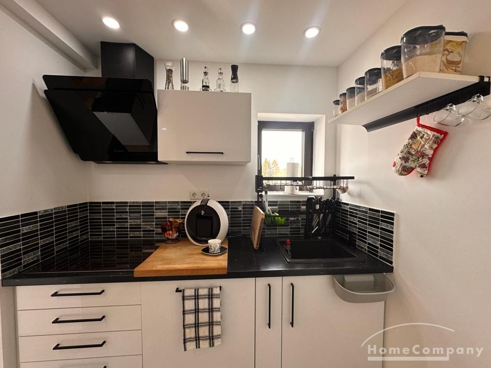 Zur Ausstattung der Küche gehören Küchenzeile, Spülmaschine, Herd und Backofen, Mikrowelle.
