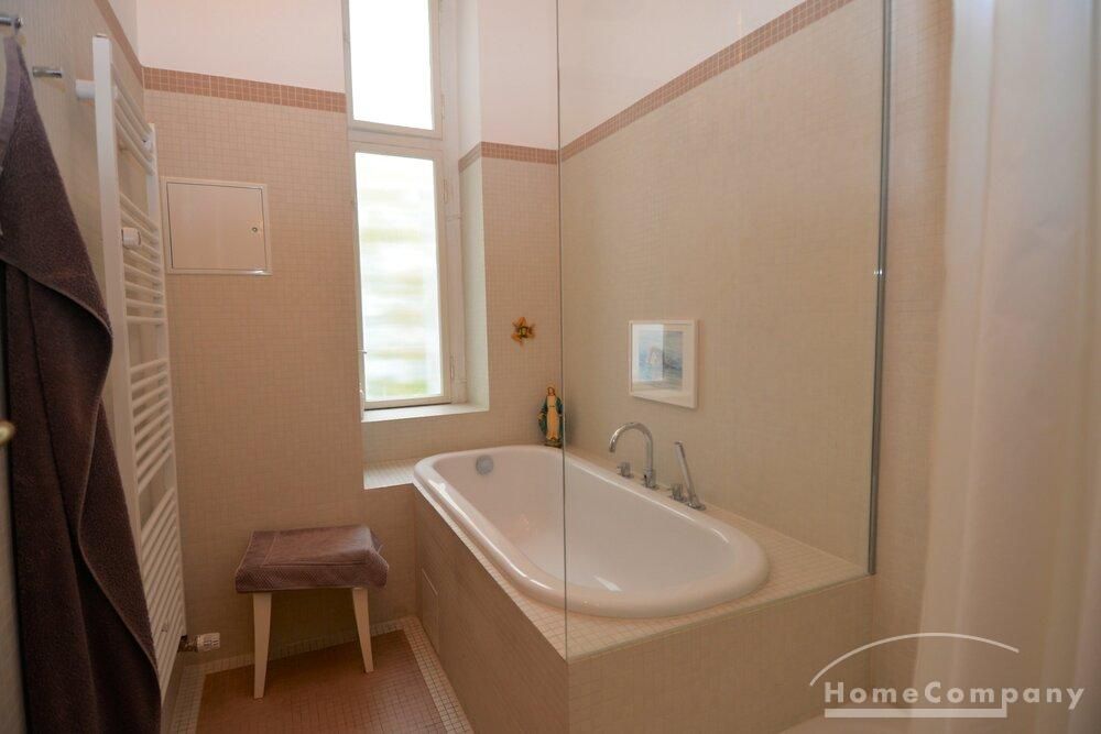 Diese geschmackvolle, großzügige Altbauwohnung in ruhiger Lage von Schöneberg liegt nur wenige Gehminuten vom Volkspark Wilmersdorf entfernt. Sie ist voll möbliert und besticht durch ihren offenen Grundriss, hohe Decken und eine helle, freundliche Atmosphäre. Das Herzstück der Wohnung bildet der große Wohn- und Essbereich mit moderner, offener Küche und Zugang zum Balkon. Neben dem Schlafzimmer mit begehbarem Kleiderschrank gibt es ein Arbeitszimmer mit Schlafcouch sowie ein Gäste-WC. Die Wohnung befindet sich in einer niveauvollen, freundlichen Hausgemeinschaft – ideal für alle, die stilvolles Wohnen in ruhiger und grüner Umgebung schätzen.