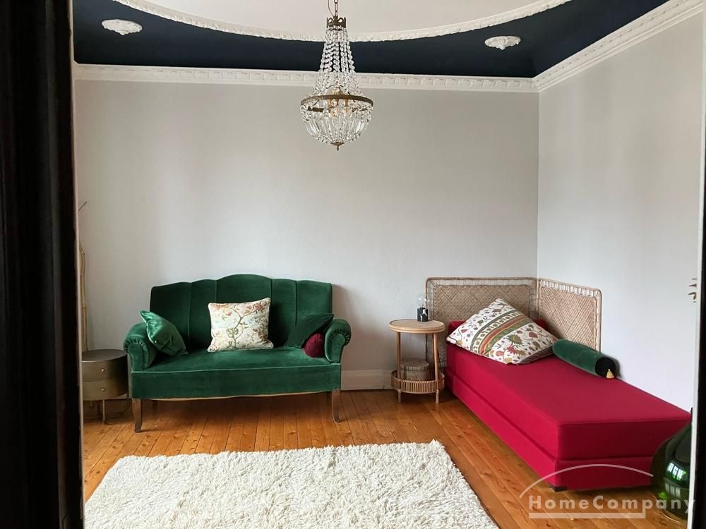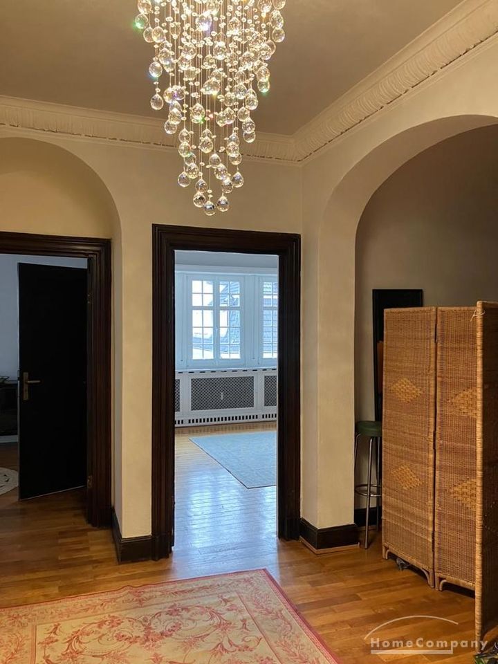 Die Wohnung hat insgesamt ca. 89 m2 Wohnfläche und befindet sich im 2. Stock einer denkmalgeschützten Villa. Sie verfügt über einen großzügigen Eingangsbereich, ein Esszimmer mit einem Esstisch für 4 bis 6 Personen, ein repräsentatives Wohnzimmer mit Doppelschlafcouch, ein Schlafzimmer mit einem großen Doppelbett (1,80 m), sehr großen Einbauschränken, Nachttischen mit Leselampen, Teppich, Gardinen, Bettwäsche, Kopfkissen und Bettdecke. Das Schlafzimmer lässt sich wie alle Räume komplett mit Rollläden verdunkeln.