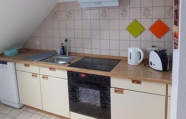 Die helle und freundliche, vollmöblierte Dachgeschosswohnung liegt in Klausbrook, in unmittelbarer Nähe zur Christian-Albrechts-Universität. Sie besteht aus einem großen Wohn-/Essbereich mit Zugang auf die sonnige Loggia. Die große Küche ist mit einem 45 cm breiten Geschirrspüler, Kaffeemaschine, Wasserkocher,Toaster und Mikrowellengerät ausgestattet. Der Kühlschrank besitzt ein Gefrierfach. Sämtliche notwendigen Küchenutensilien sind vorhanden.