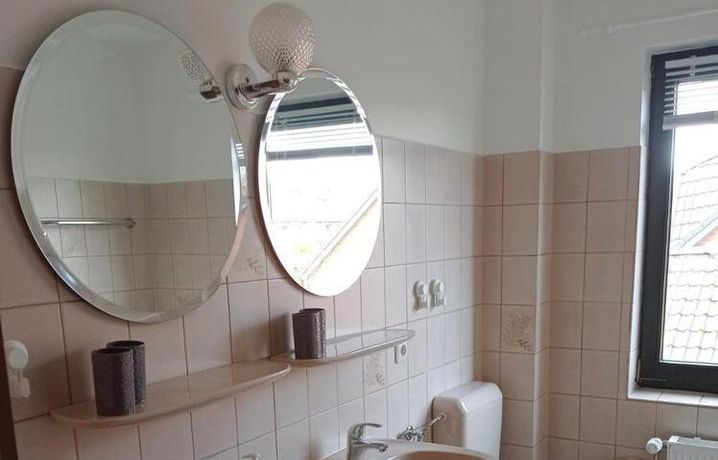 Es steht ein Schlafraum zur Verfügung. Das Tageslichtbad verfügt über eine Wanne mit Duschaufsatz und 2 Waschbecken.