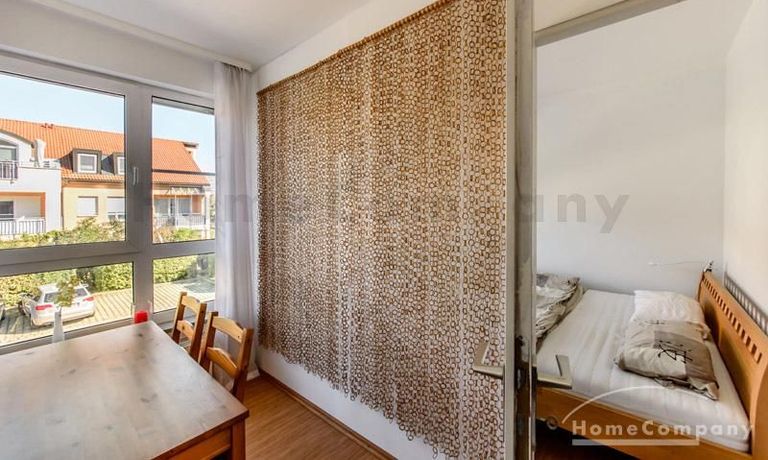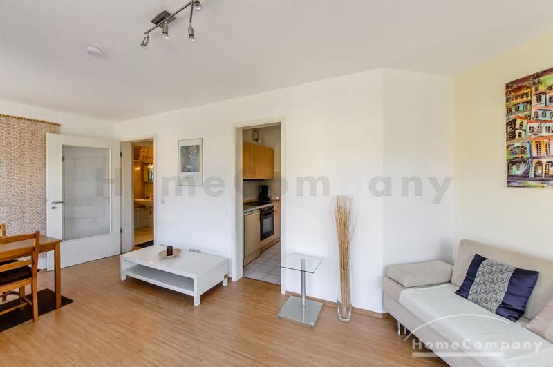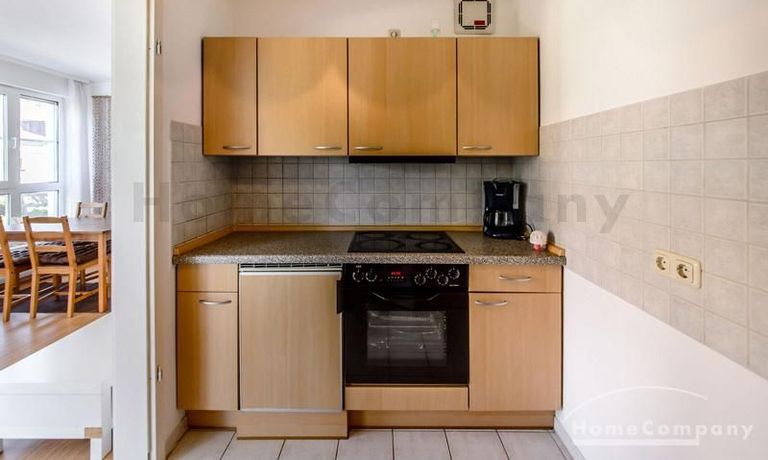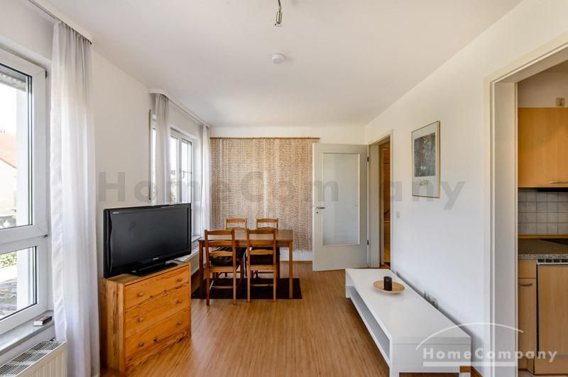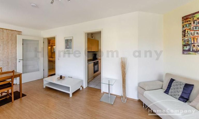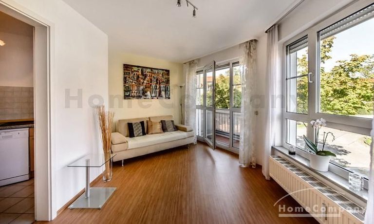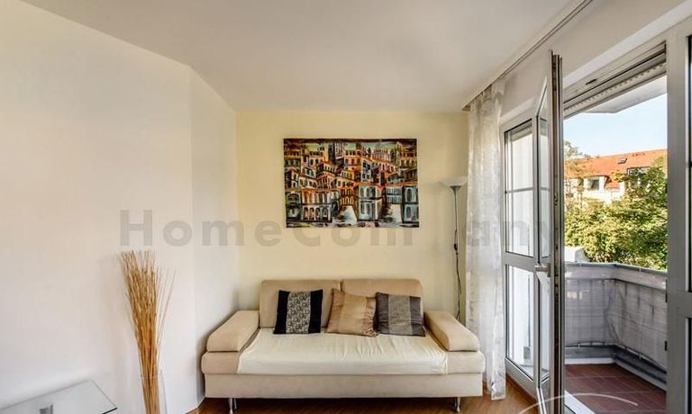Helle und ruhige möblierte 1,5-Zimmer-Wohnung im Galeriestil in Aschheim. 1. Stock in Neubau mit Aufzug. Hochwertig und stilvoll eingerichtet. Doppelbett (180 x 200 cm) im separaten Schlafbereich und zusätzlicher Schlafcouch (160 x 200 cm) im Wohnzimmer. Dort gibt es auch einen Esstisch für vier Personen. Im Appartment ist Laminatboden verlegt. Separate moderne Küche mit Spülmaschine. Waschküche im Keller des Hauses. Tiefgarage vorhanden.