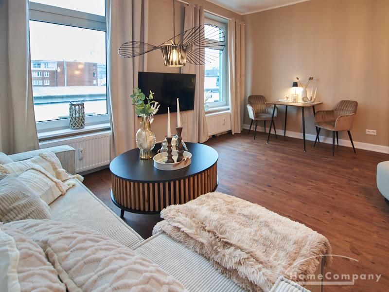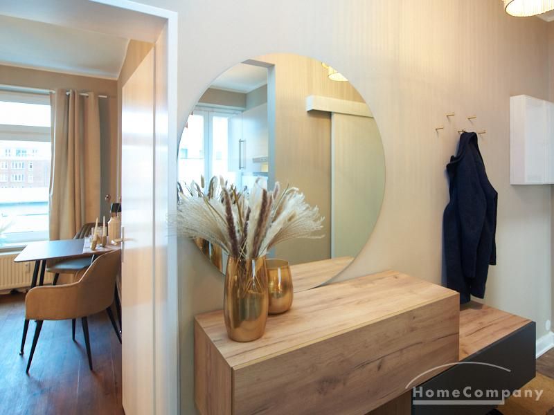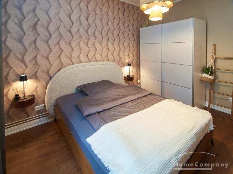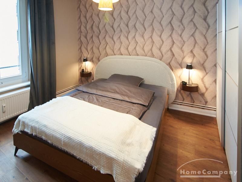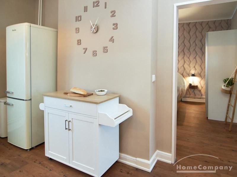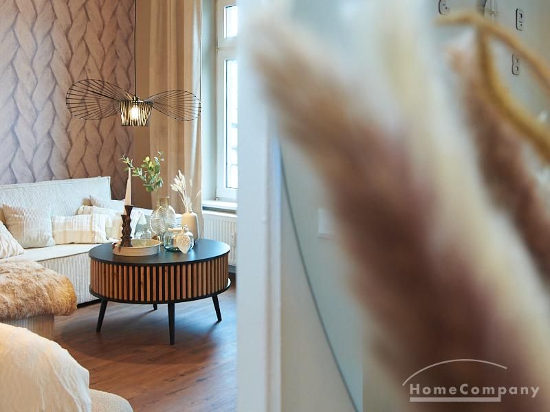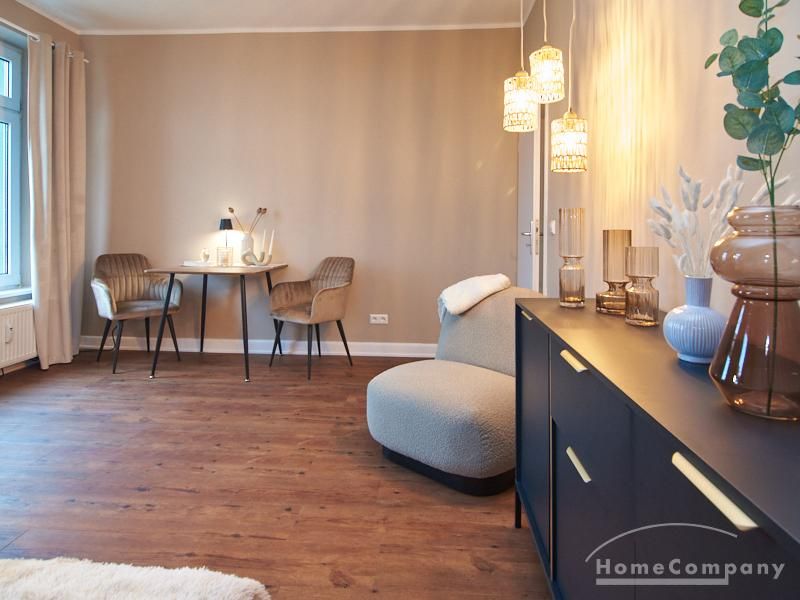 Eleganter Boho-Chic mit stilvoller Eleganz im schönen, zentralen Stadtteil Rotherbaum. Die ruhige Wandfarbe von Farrow and Ball „Jitney“ ist anheimelnd – dieser warme Erdton wirkt sehr zurückhaltend und doch wirkt sie unglaublich aufmunternd und erinnert an faule Tage am Meer. Daher trägt es auch den Namen des Busses, der die New Yorker aus der heißen Stadt zu den ähnlich gefärbten Sandstränden draußen in den Hamptons bringt. Dieses entspannte und schicke Lebensgefühl findet sich in der Gesamteinrichtung der Wohnung mit hellen, warmen Tönen, hellen Stoffe und natürlich anmutenden Accessoires. Das Wohnzimmer ist hell und geräumig mit einem sehr bequemen Sofa und einem Esstisch eingerichtet. Im Flur gibt es zwei moderne Garderoben-Hängeschränke und einem 1m großen, runden Spiegel. Das Schlafzimmer hat ein sehr gemütliches 1,60 x 2m Bett mit guter Matratze. Neben dem Kleiderschrank bietet eine Kommode weiteren Strauraum. Die weiße Küche ist voll ausgestattet und bietet obendrein einen 1,80 hohen, coolen freistehende Kühl- und Gefrierschrank im tollen Look und einen flexiblen Küchenwagen. Die Wohnung hat einen sehr edlen, neuen Fußboden. Das Tageslichtbad ist ebenfalls in 12/2023 komplett saniert. Die Wohnung befindet sich in einer kaum befahrenen Seitenstraße.
