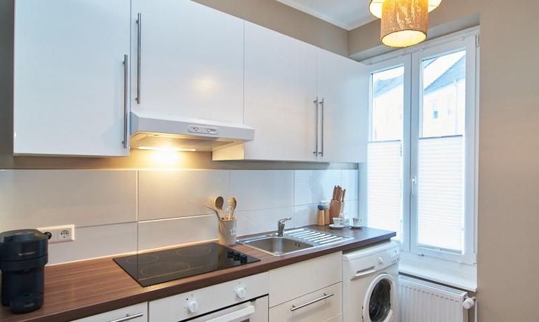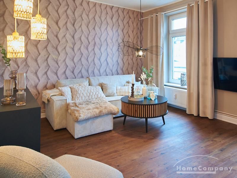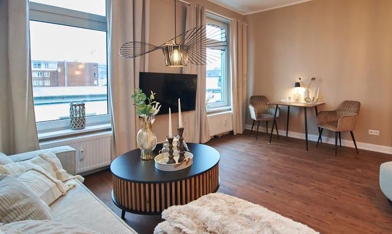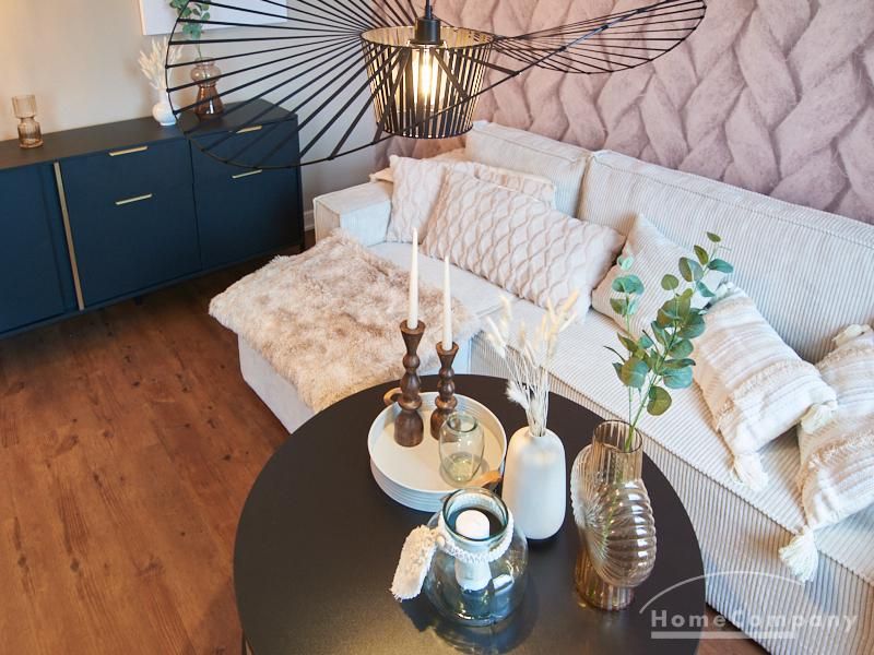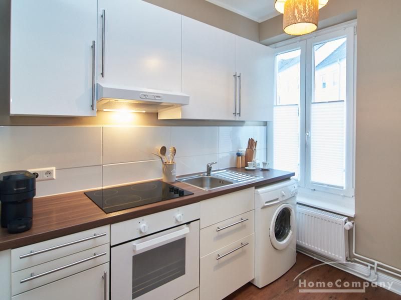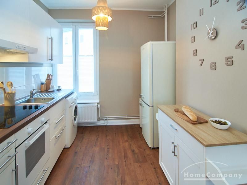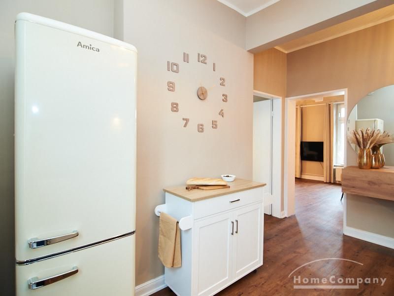 Eleganter Boho-Chic mit stilvoller Eleganz im schönen, zentralen Stadtteil Rotherbaum. Die ruhige Wandfarbe von Farrow and Ball „Jitney“ ist anheimelnd – dieser warme Erdton wirkt sehr zurückhaltend und doch wirkt sie unglaublich aufmunternd und erinnert an faule Tage am Meer. Daher trägt es auch den Namen des Busses, der die New Yorker aus der heißen Stadt zu den ähnlich gefärbten Sandstränden draußen in den Hamptons bringt. Dieses entspannte und schicke Lebensgefühl findet sich in der Gesamteinrichtung der Wohnung mit hellen, warmen Tönen, hellen Stoffe und natürlich anmutenden Accessoires. Das Wohnzimmer ist hell und geräumig mit einem sehr bequemen Sofa und einem Esstisch eingerichtet. Im Flur gibt es zwei moderne Garderoben-Hängeschränke und einem 1m großen, runden Spiegel. Das Schlafzimmer hat ein sehr gemütliches 1,60 x 2m Bett mit guter Matratze. Neben dem Kleiderschrank bietet eine Kommode weiteren Strauraum. Die weiße Küche ist voll ausgestattet und bietet obendrein einen 1,80 hohen, coolen freistehende Kühl- und Gefrierschrank im tollen Look und einen flexiblen Küchenwagen. Die Wohnung hat einen sehr edlen, neuen Fußboden. Das Tageslichtbad ist ebenfalls in 12/2023 komplett saniert. Die Wohnung befindet sich in einer kaum befahrenen Seitenstraße.