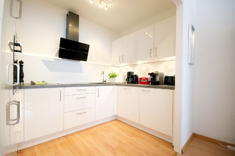 Geräumiges 1-Raum-Apartmenet mit offen anschließender Küche. Das Apartment ist ausgestattet mit einem neuen luxuriösen Schlafsofa mit Lattenrost, 18cm hoher Matratze und Bettkasten. Der Flachbildschirm verfügt über einen Satellitenanschluss. Ein Schrank, Sessel und ein Esszimmertisch stehen ebenfalls im Wohnschlafraum bereit. Bei Bedarf kann ein zusätzliches Einzelbett aufgestellt werden. Die neue, moderne integrierte Küche ist komplett ausgestattet. Sie verfügt über eine Spülmaschine, Waschtrockner, Kühl- Gefrierkombi und Nespresso-Kaffeemaschine. Ein Duschbad und ein Einbauschrank runden das Angebot ab. Die Fenster wurden 2005 erneuert und verfügen über Außenjalousien. Ein Fahrradkeller ist im Haus verfügbar.