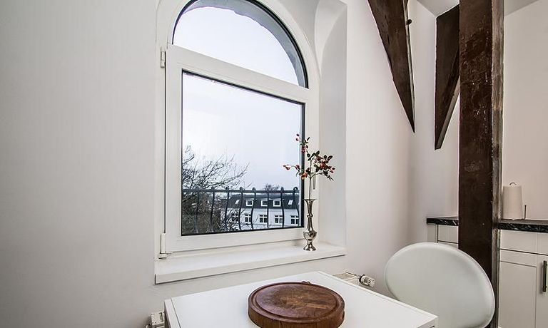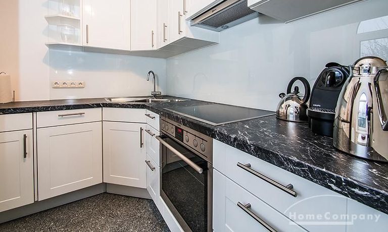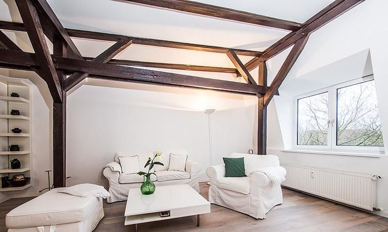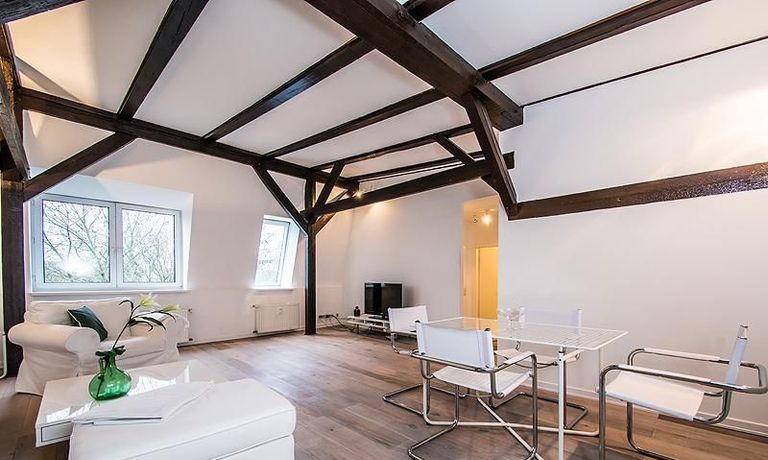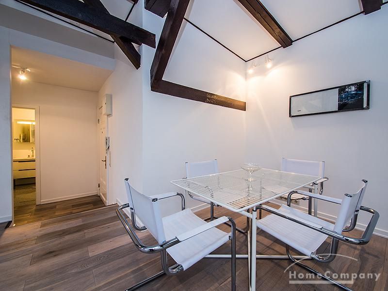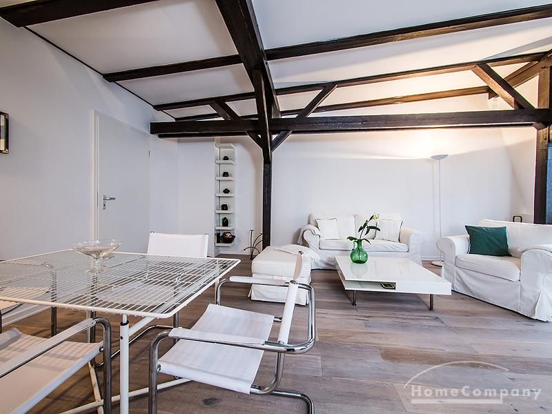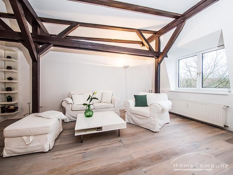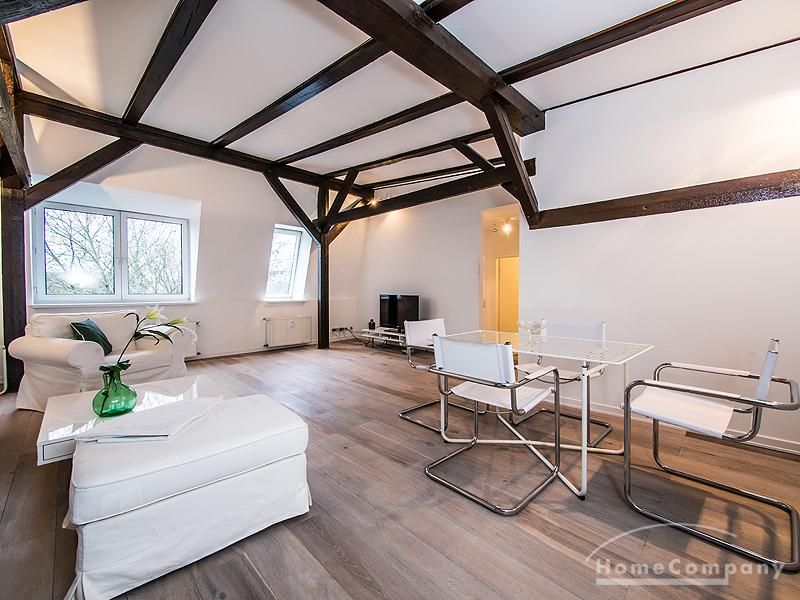 Die Wohnung ist sehr ruhig in einem der schönsten Teile von Ottensen gelegen, das wegen seiner vielen Restaurants, Bars und kleinen Geschäfte zu den beliebtesten Stadtteilen Hamburgs zählt. In nur 350m erreicht man die Elbparks und in nur 500m die Elbe. Die lichtdurchflutete Wohnung befindet sich in einem Jugendstilhaus (1900 fertig gestellt). Sie besticht durch Ihre Helligkeit, klares Design und modernste Ausstattung wie z.B. Küche mit Induktions-Kochfeld mit Topferkennung und Powerfunktion, Herd/Ofen mit extra großem Garraum, Gefrierschrank mit No-Frost-Technik, Geschirrspüler auch für „halbe Beladung“ und mit Wärmetauscher, Waschtrockner, Ausstattung aller 20 Schranktüren und Schubladen mit Dämpfern. Im Wohnzimmer befinden sich u.a. ein neuer 40-Zoll HD-Fernseher, eine Mini-CD-Stereo-Anlage mit Radio und Anschlüssen für MP3, iPod und iPhone. Das Bad ist mit italienischen Designer-Armaturen ausgestattet. Die Fußböden in Küche und Bad sind aus Granit, alle anderen Böden sind aus weiß geöltem Eichenparkett. Zum Flughafen (12,5 km) fährt man 20 Min, der Altonaer Bahnhof ist nur 800m entfernt, der Rathausmarkt (schönes und beliebtes Zentrum der Innenstadt Hamburgs) 4,8 km.