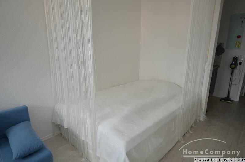 Die Wohnung befindet sich in der 1. Etage eines Mehrfamilienhauses. Im Wohnzimmer ist der Schlafbereich geschickt durch einen Vorhang vom Wohnbereich getrennt. Der Küchenbereich besteht aus einem Essbereich und einer kleinen Singleküche mit Kühlschrank, Elektroherd und integrierter Mikrowelle mit Backofenfunktion. Das Badezimmer ist mit einer Dusche ausgestattet. Handtücher und Betwäsche werden gestellt. Miete zuzüglich der Stromkosten, die an den Versorger gezahlt werden. Aufgrund der Größe ist die Wohnung perfekt für eine Person.