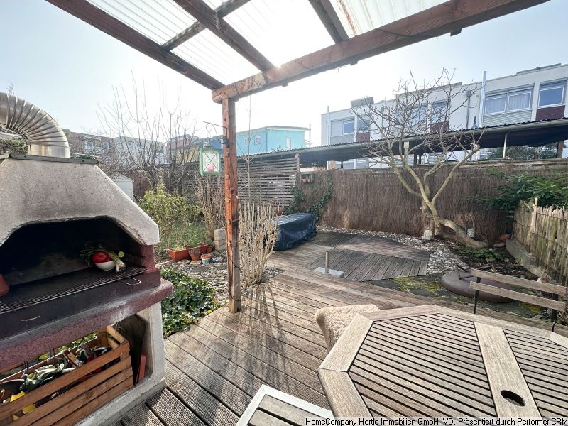 und einem fest installierten Grill mit eigenem Rauchabzug.