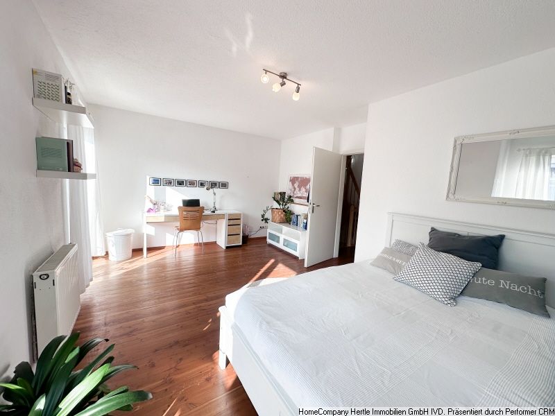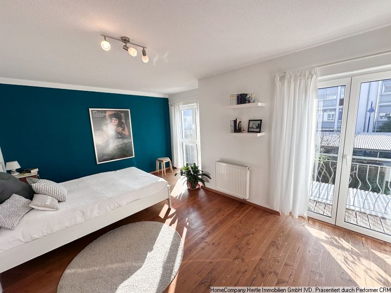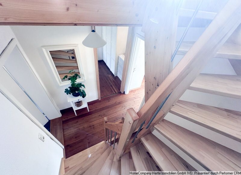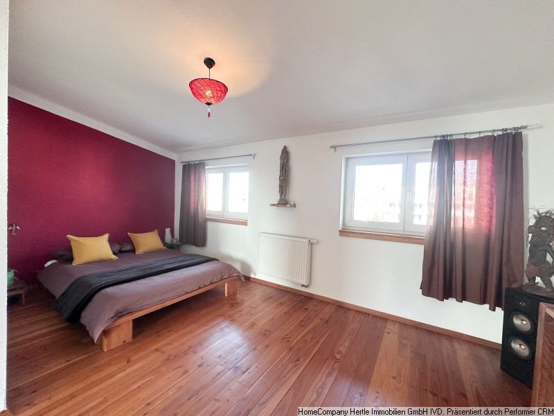 Im ersten Obergeschoss (Zugang über die innenligende Holztreppe) beifndet sich ein Schlafzimmer mit Südbalkon,