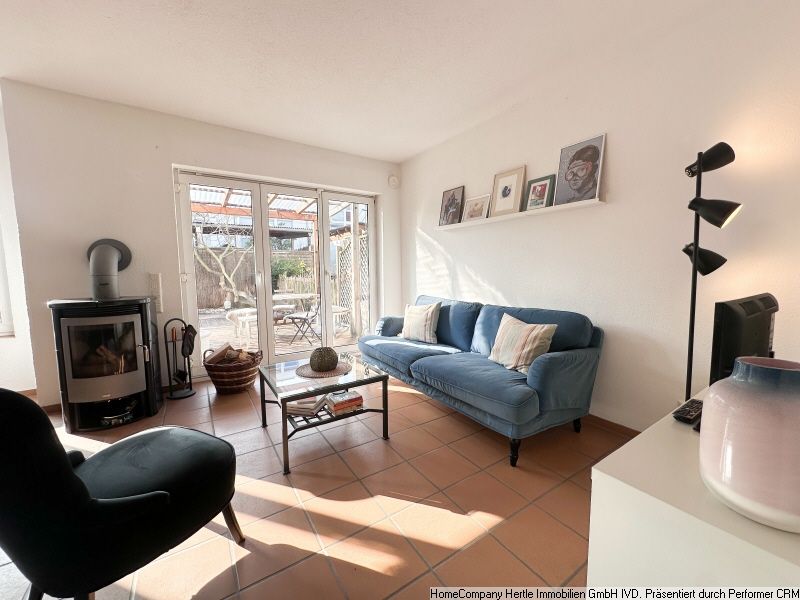 mit Einbauküche, Schwedenofen (mit Brennholzbestand zum Verbrauchen) sowie Zugang zur Terrasse/Garten mit überdachtem Sitzbereich