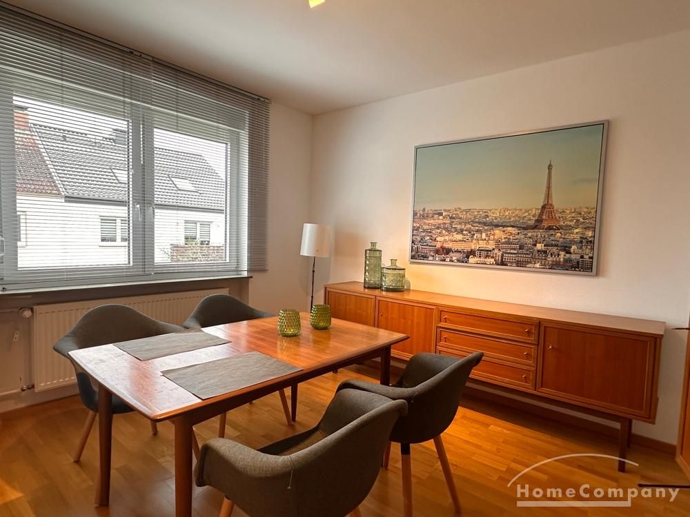 Die ca. 70m² große Wohnung befindet sich in der 1. Etage eines 3-stöckigen Wohnhauses. Das Wohnzimmer mit Balkon, sowie das Esszimmer, Schlafzimmer und die Küche sind über den Flur erreichbar. Am Ende des Flurs befindet sich das Bad. Die modern eingerichtete Wohnung ist mit Parkett ausgelegt, die Küche und das Bad mit Fliesen.