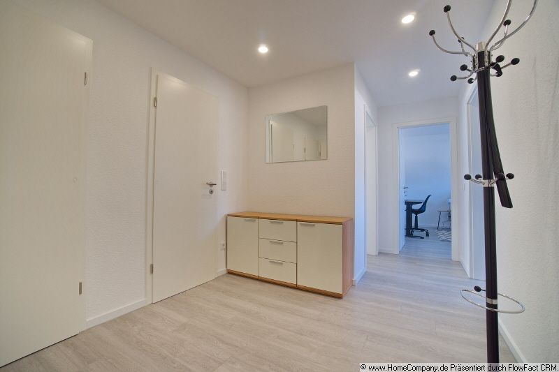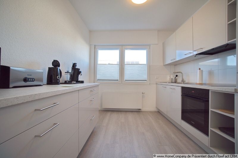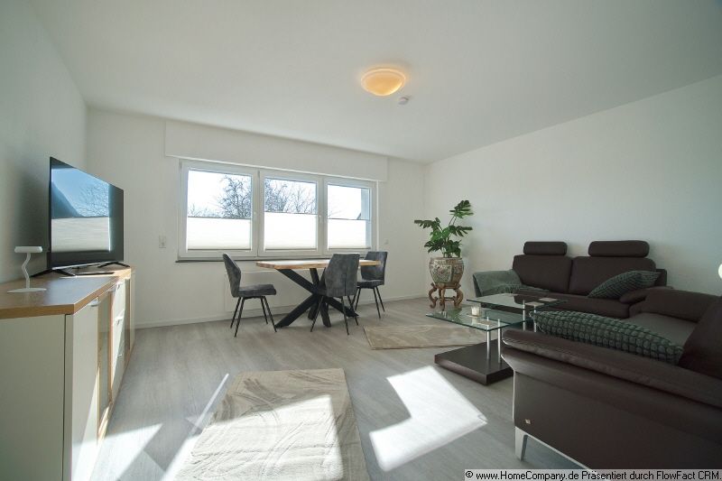 Die Wohnung wurde 2026 vollständig renoviert und hochwertig neu möbliert, sodass sie sich im Erstbezugszustand präsentiert. Das Wohnzimmer ist stilvoll eingerichtet und verfügt über eine hochwertige Sitzgarnitur der Premium-Designmarke Rolf Benz, ein Sideboard mit Fernseher (Smart-TV) sowie einen großzügigen Esstisch mit passenden Stühlen. Im Schlafzimmer befindet sich ein komfortables 2,00 x 2,00 Meter Boxspringbett, zusätzlich steht hier ein Schreibtisch zur Verfügung. Das Gästezimmer ist mit hochwertigen Möbeln der Marke Koinor ausgestattet und verfügt über ein Gästebett (1,20 m x 2,00 m) sowie einen Kleiderschrank. Die moderne Einbauküche ist komplett neu und mit hochwertigen Bosch-Elektrogeräten ausgestattet. Zur Ausstattung gehören unter anderem Induktionskochfeld, Backofen, Kühlschrank mit Gefrierfach, Mikrowelle, Toaster, Wasserkocher sowie eine Philips Senseo Kaffeemaschine. Das Tageslichtbadezimmer ist ebenfalls komplett neu gestaltet und verfügt über Badewanne, Dusche und Fenster. Im Flur befinden sich zusätzlich eine Kommode sowie eine Garderobenstange. Eine Waschmaschine steht im Keller zur Verfügung. Ein Internetzugang ist im Mietpreis enthalten.
