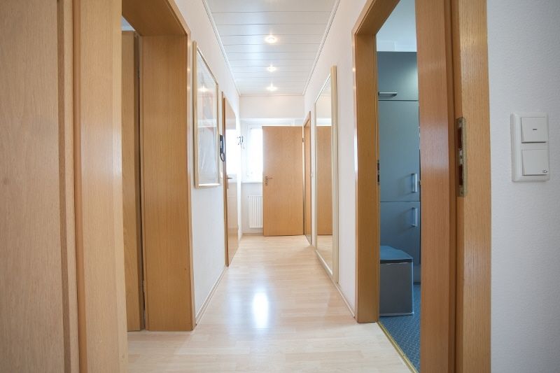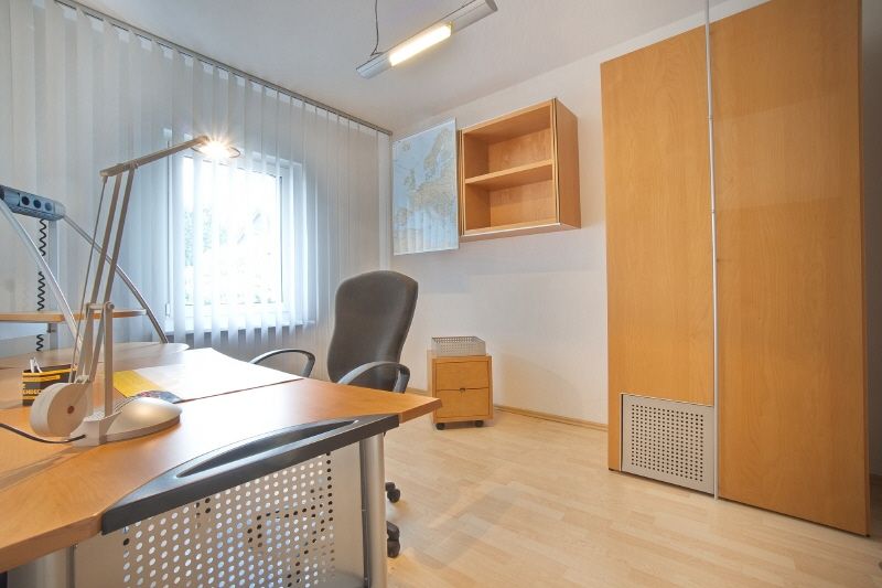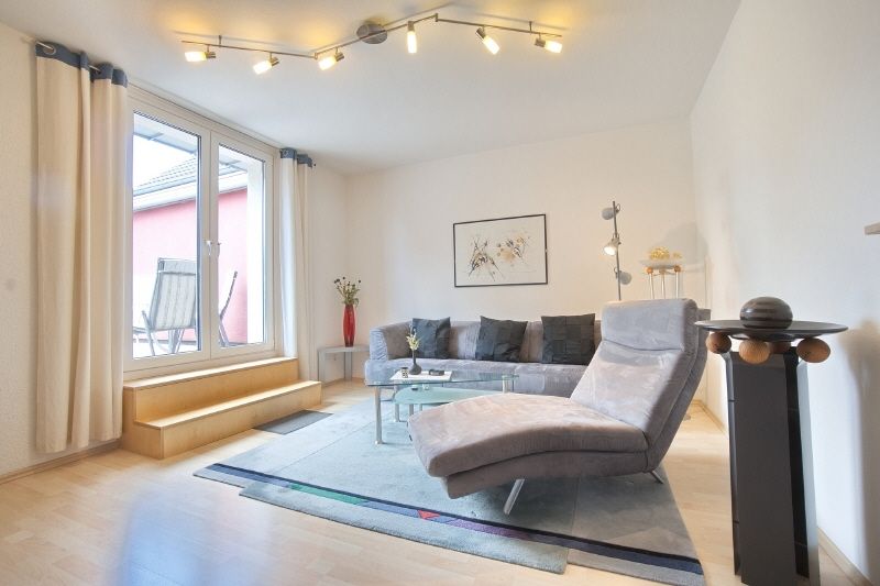 Wohnzimmer mit Ledercouchgarnitur inklusive passendem Relaxsessel, Couchtisch und moderner Wohnwand inkl. Flachbild-TV. Zugang zur großen Dachterrasse. Moderne Einbauküche, diese beinhaltet einen Ceranherd mit Backofen, Kühlschrank und Spüle sowie alles übliche Kücheninventar. Ein kleiner Essplatz ist auch vorhanden. Schlafzimmer mit Doppelbett (1,80 x 2 m) und großem Kleiderschrank. Separates Arbeitszimmer inklusive Schreibtisch mit Stuhl und verschiedenen Regalen. Sehr modernes Bad mit Dusche und Handtuchheizung. PKW-Stellplatz direkt vor dem Haus. Balkon, Internet.
