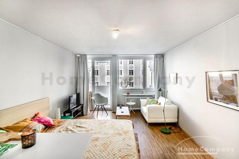 Hübsches möbliertes 1-Zimmer-Appartment Nähe Rotkreuzplatz mit Balkon, komplett ausgestattet. Ruhige Lage in kleiner Einbahnstraße. 1. Stock mit Lift. Kombinierter Wohn/Schlafraum mit Franz. Bett (Breite 1,40m) und bequemen Sessel. Klappbarer Esstisch mit 2 Stühlen. Gefliestes Bad mit Badewanne. Moderne Küche mit Cerankochfeld und Backofen. Durch die vielen Einbauschränke ist viel Stauraum vorhanden. Im Appartment ist schöner Parkett verlegt. Waschmaschine in der Waschküche im Keller zur Gemeinschaftsnutzung; ebenso ist ein Waschsalon in nächster Nähe. Geschäfte in wenigen Gehminuten erreichbar. Öffentliche Verkehrsmittel in direkter Nähe.