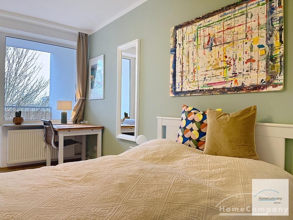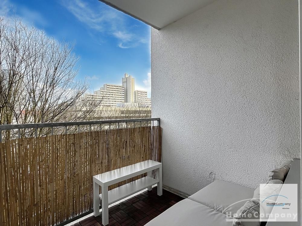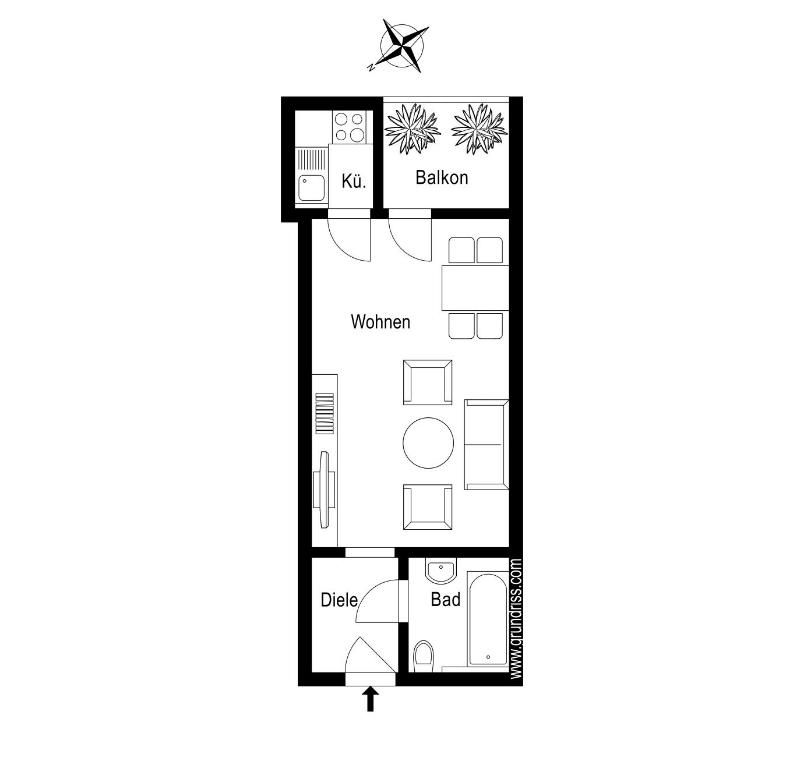 Der Wohn/Schlafbereich ist mit einem Einzelbett und kleiner Essecke ausgestattet. Flatscreen-TV. Von hier aus Zugang zum schönen Balkon. Seperate, voll ausgestattete Küche.