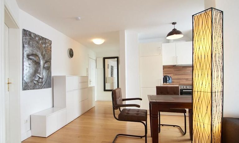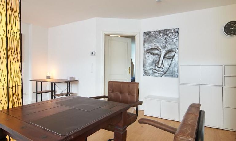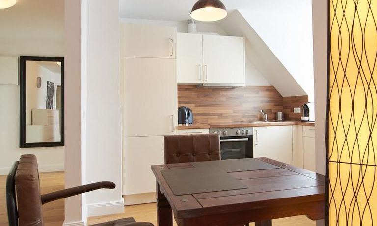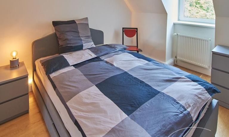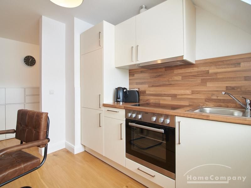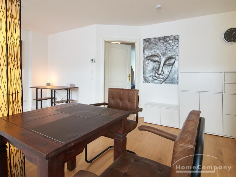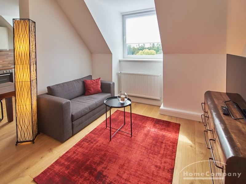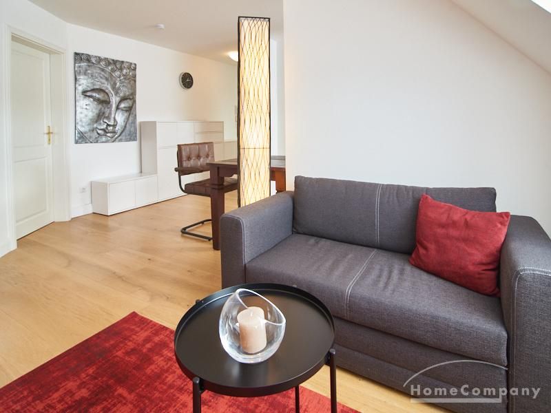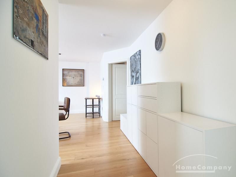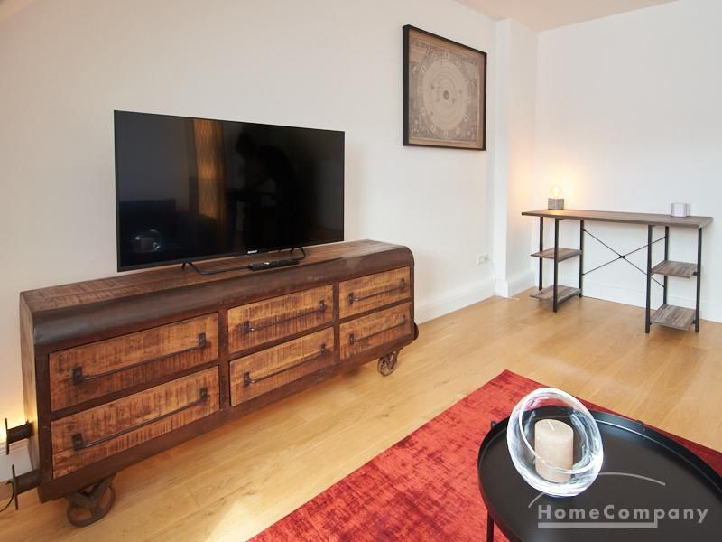Die Wohnung besticht durch Ihre schönen Dachschrägen mit ansprechend gestalteten Gauben für die Fenster. Die moderne Möblierung mit industrial Elementen unterstützt die großzügige Raumwirkung, besondere Akzente lassen sich über ein Smart-Home-Lichtsystem setzen.