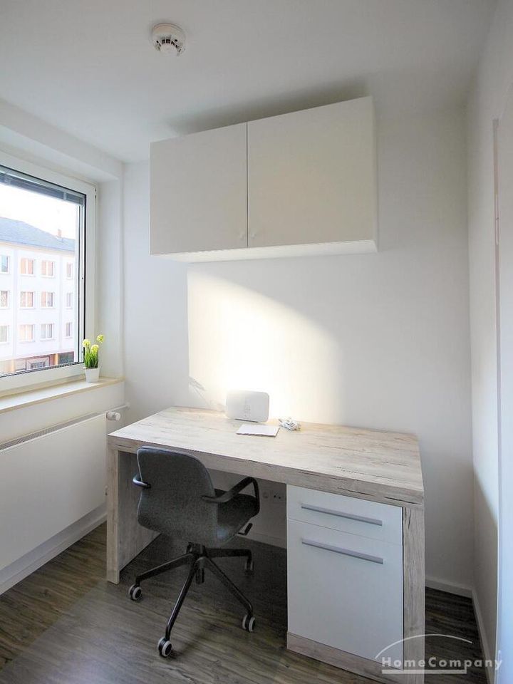 Wieder im Flur angekommen erschließt sich nun rechts ein helles Arbeitszimmer, mit Schlafcouch welches Individuelle Nutzungsmöglichkeiten bietet.