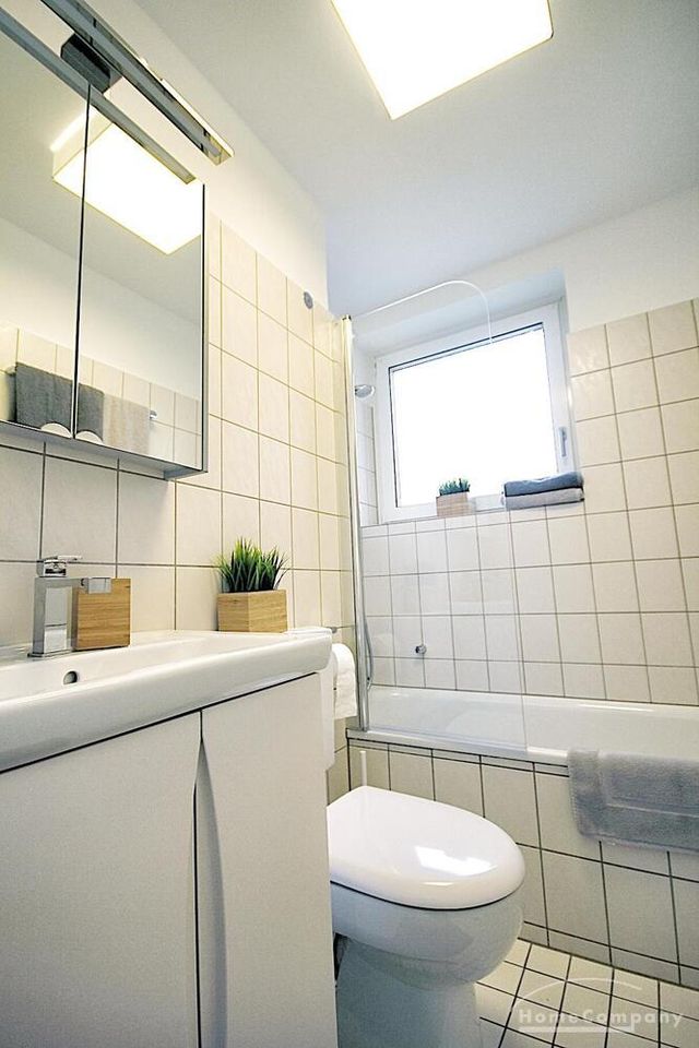 Am Flurende befindet sich das Wannenbad welches mit seiner praktischen Glastrennwand auch gut zum duschen genutzt werden kann und wie alle Zimmer über Tageslicht verfügt.