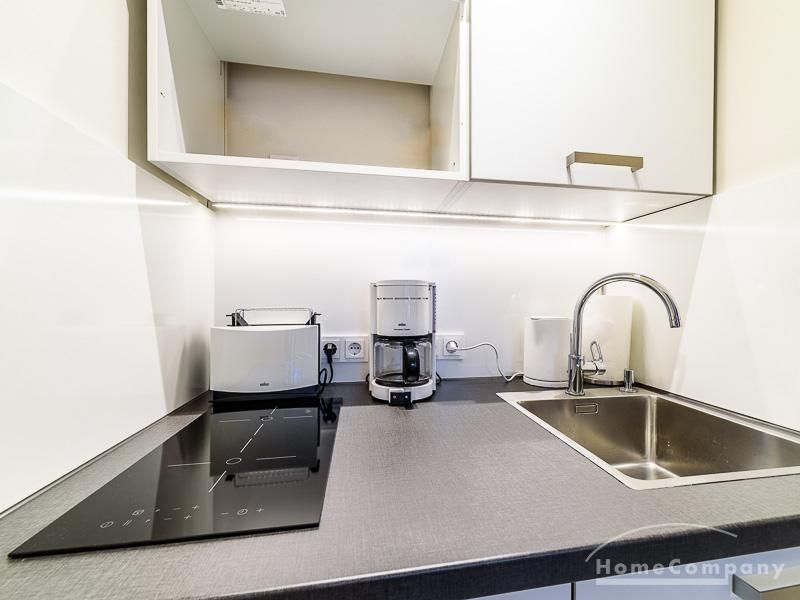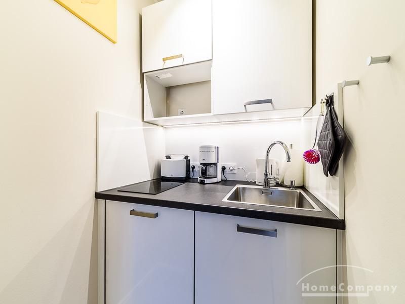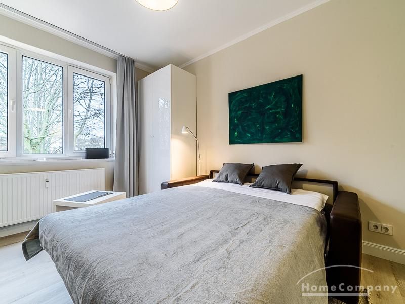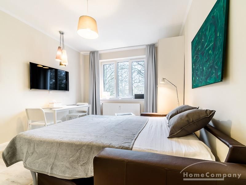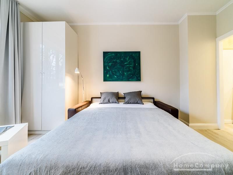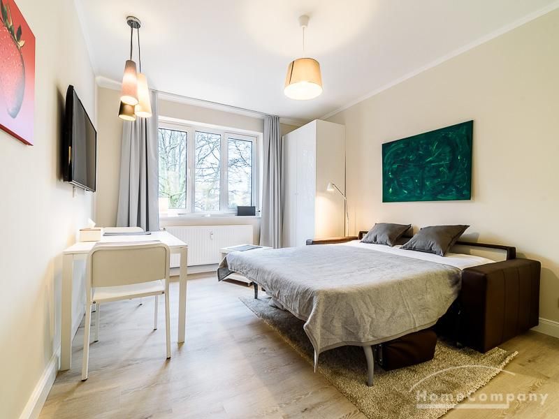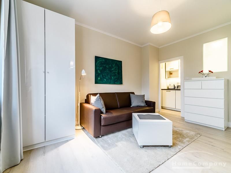 Im Apartment ist ein ansprechender und pflegeleichter Designboden verlegt. Im Wohn-/Schlafraum steht ein hochwertiges, mit Matratze und Lattenrost ausgestattetes Bettsofa zur Verfügung. Eine Fototapete mit einem Birkenwald gibt eine gute Raumwirkung. Weiterhin biete ein kleiner Tisch mit zwei Stühlen einen schönen Essplatz, der auch als Schreibtisch genutzt werden kann. In die Wand zwischen Bad und Küche ist im oberen Bereich ein Lichtfeld integriert. Insgesamt zeichnet sich das Apartment auch durch einige nette durchdachte Details, wie z.B. ein integriertes Badezimmerradio aus. Im Wohnzimmer steht ein 48 “ TV ebenso wie ein bluetooth / CD Player zur Verfügung. Die Wohnung ist gegenüber eines Parks gelegen. KfZ Stellplätze sind im Straßenraum vorhanden.