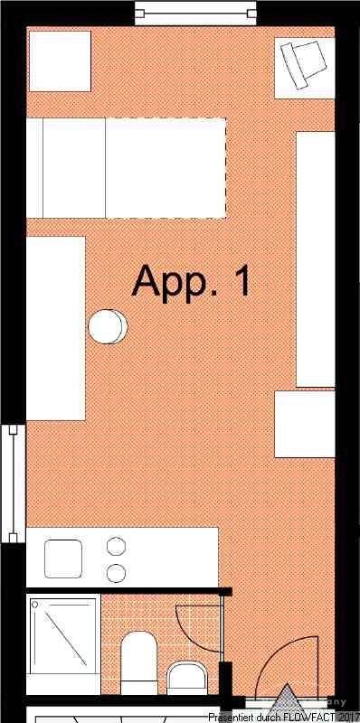 Dieses Apartment liegt im Herzen des beliebten Viertel. Da das Apartment zum Innenhof liegt ist es trotzdem sehr ruhig. Die Pantry ist im Zimmer integriert. Das Duschbad liegt hinter der Küchenzeile.