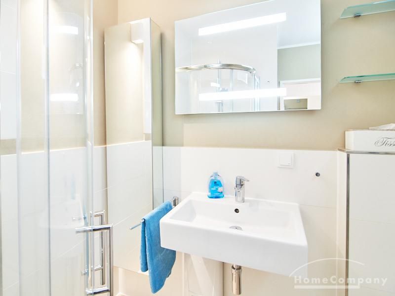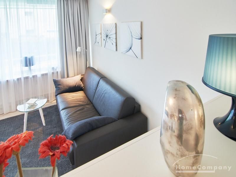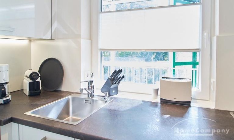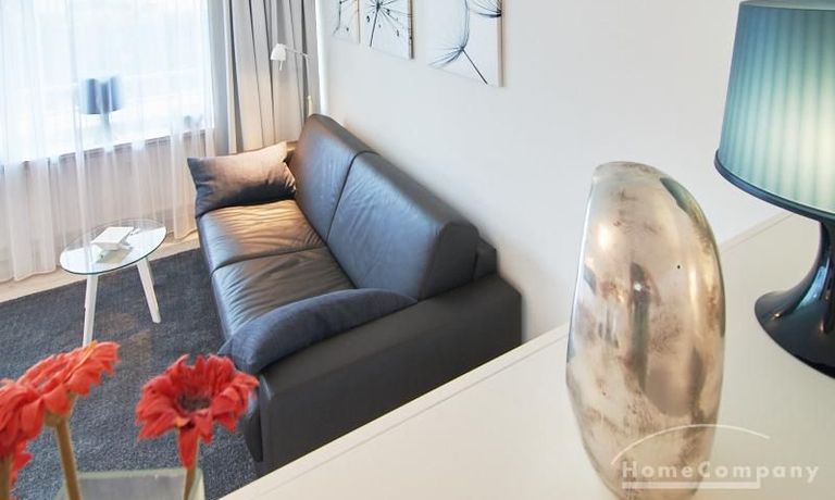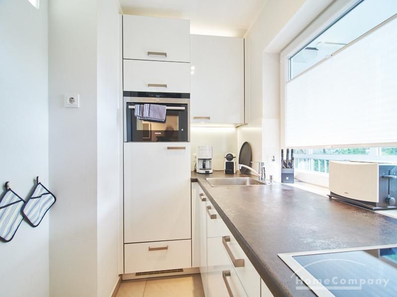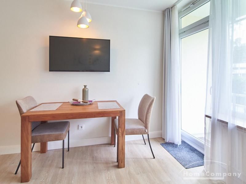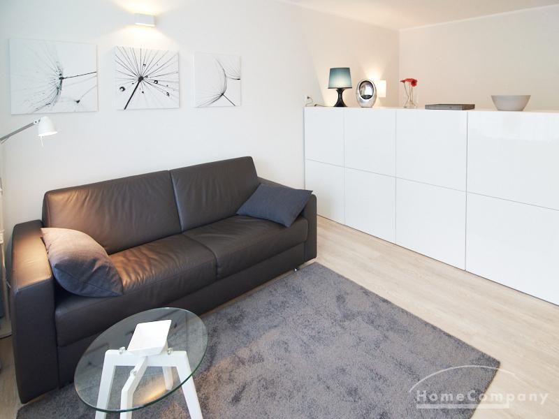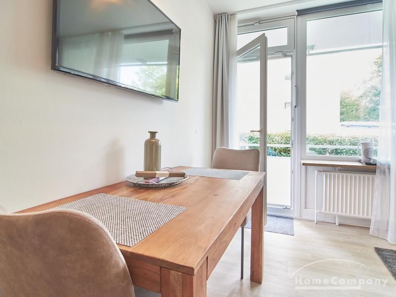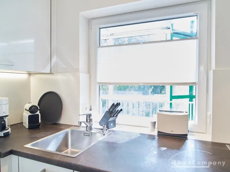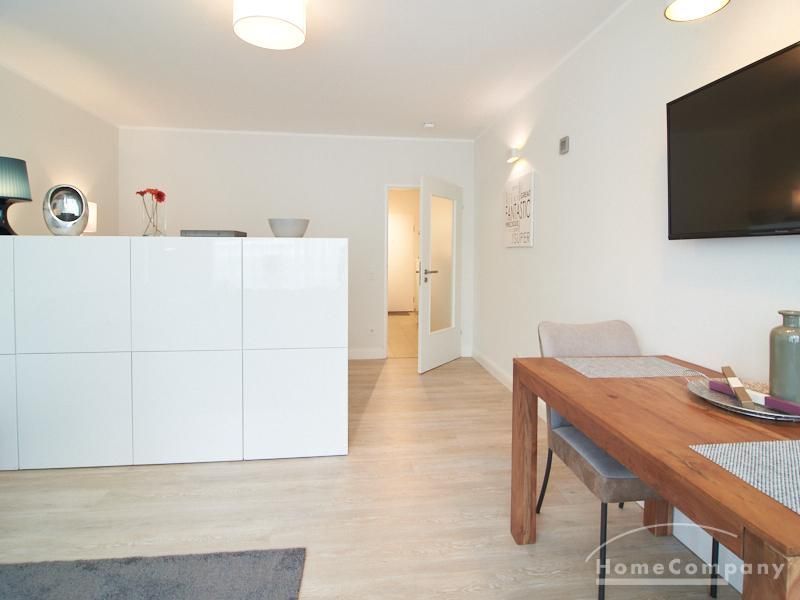 1-Zimmer-Apartment im Hochparterre in einer ruhigen Seitenstraße in Eimsbüttel. Die Wohnräume sind mit einem ansprechenden und pflegeleichten Designboden versehen. Das helle und freundliche Wohnzimmer ist durch einen Raumteiler, der reichlich Stauraum bietet, in einen Wohnbereich und einen mit einem 1,40 breiten Bett ausgestatteten Schlafbereich separiert. Der Wohnbereich ist sehr geschmackvoll und modern eingerichtet. Ein hochwertiges Leder-Bettsofa (separate Matratze) steht hier als Gästebett zur Verfügung. Von dem gemütlichen Wohnbereich gelangt man auf den großzügigen Balkon. Die hochwertige Einbauküche ist neben Geschirrspüler und Induktionsherd mit einem detailliert programmierbaren Backofen ausgestattet. In die Wand zwischen Bad und Küche ist im oberen Bereich ein Lichtfeld integriert. Im schönen Bad befindet sich eine halbrunde Dusche mit Glasabtrennung. Im Flur bietet ein geräumiger Einbaukleiderschrank reichlich Platz für die Garderobe.