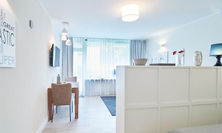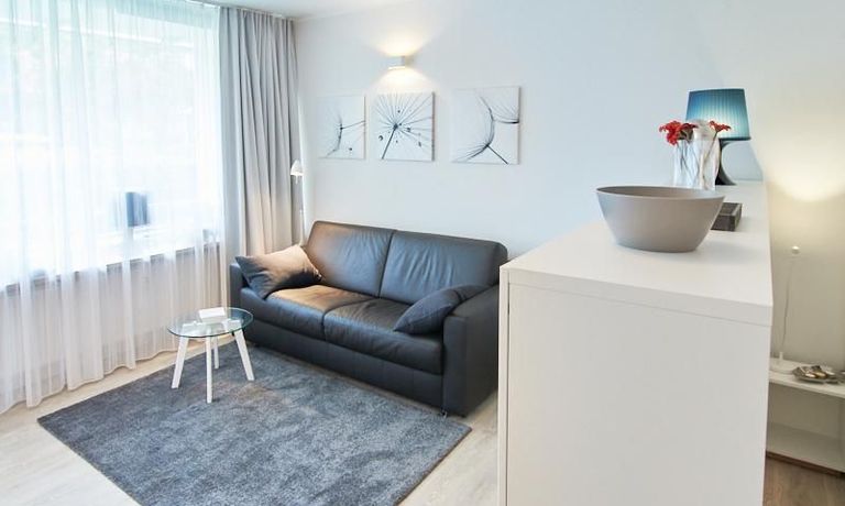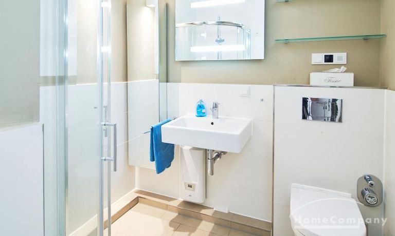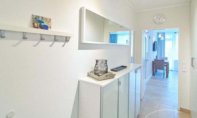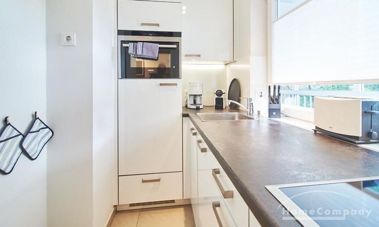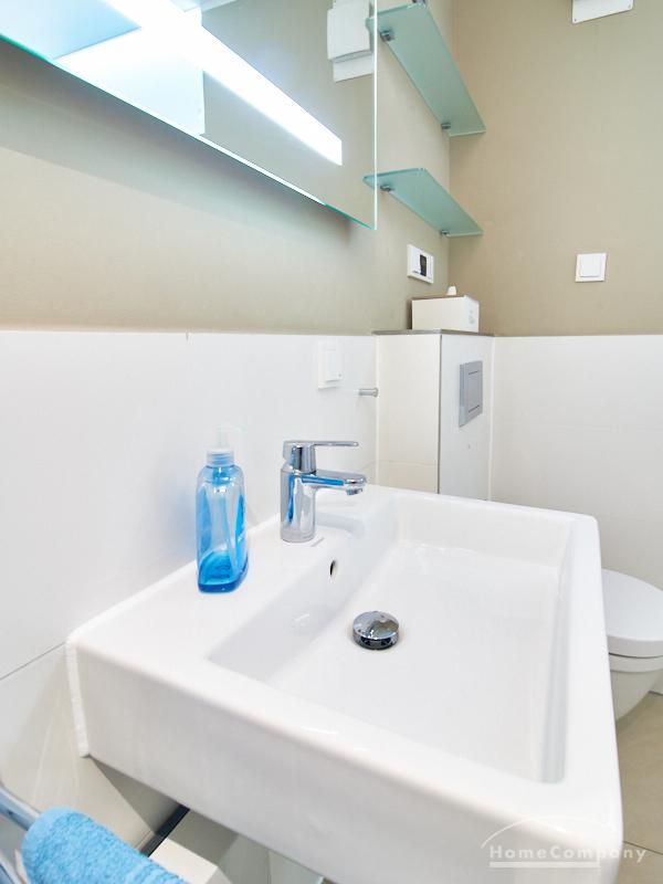 Insgesamt zeichnet sich das Apartment auch durch einige nette durchdachte Details, wie z.B. ein integriertes Badezimmerradio und einen zentralen Schalter für die gesamte Wohnungsbeleuchtung an der Eingangstüre, aus. Waschmaschine und Trockner befinden sich in der Waschküche des Hauses und sind mit einem wieder aufladbaren Chip zu benutzen. Die Kosten für das Aufladen des Chips werden zum Ende der Mietzeit abgerechnet.