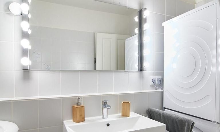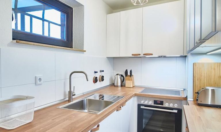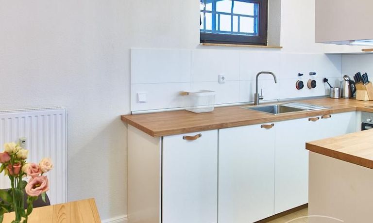 Zusätzlich zur Waschmaschine ist ein Trockner vorhanden. Die Wohnung verfügt über ein 50 Mbit schnelles Internet.