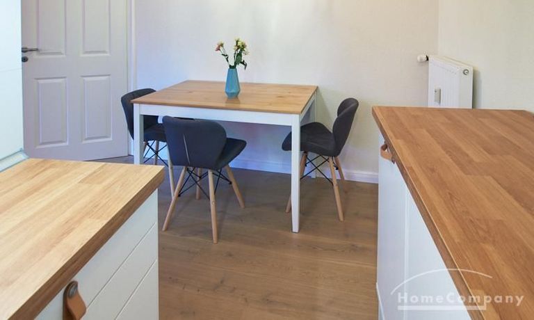 In 2021 neu eingerichtete Wohnung in ruhiger Wohnstraße, fußläufig zum Schanzenviertel. Die Wohnung verfügt über eine angenehme, komfortable Raumaufteilung und ist mit Markengeräten ausgestattet. Der Wohnbereich geht in eine offene Küche über, die über Eck gelegen ist. Zwischen Wohnbereich und Küche befindet sich der Essbereich.