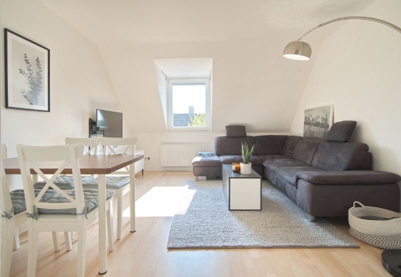 Ansprechende und helle Maisonettewohnung in einem Zweifamilienhaus, als komfortable Hotelalternative für den beruflichen bzw. geschäftlichen Aufenthalt konzipiert: Vermietung mit vollständigem Inventar und Internetzugang, ein PKW-Stellplatz am Haus gehört zum Angebot. Nichtraucher-Wohnung.