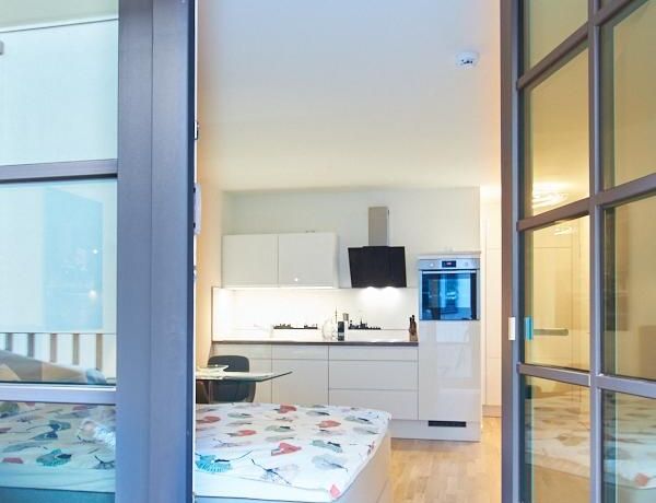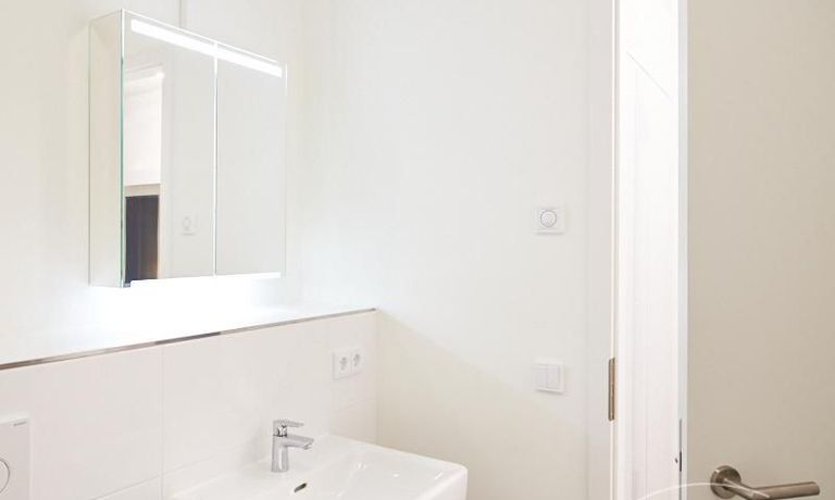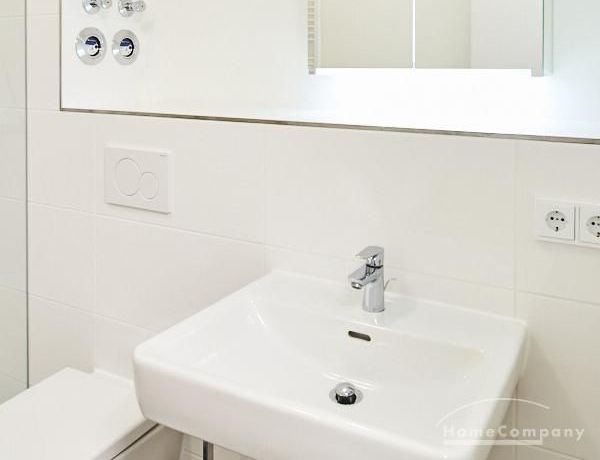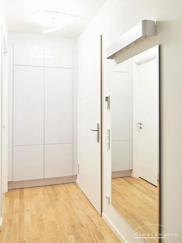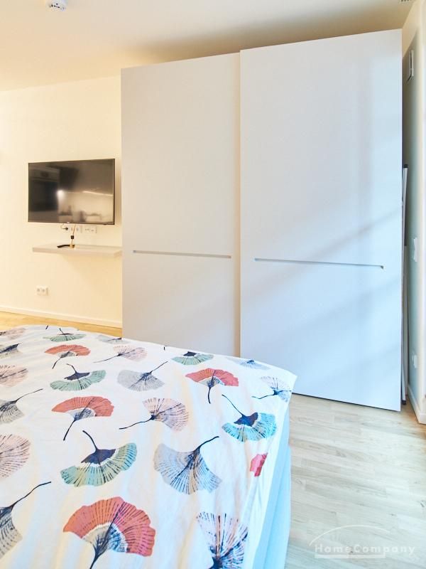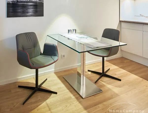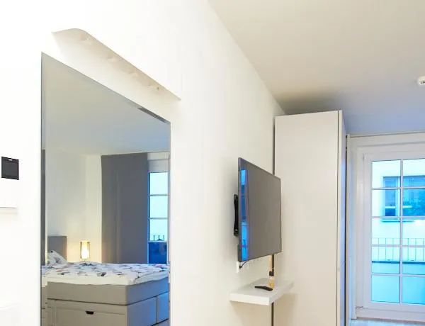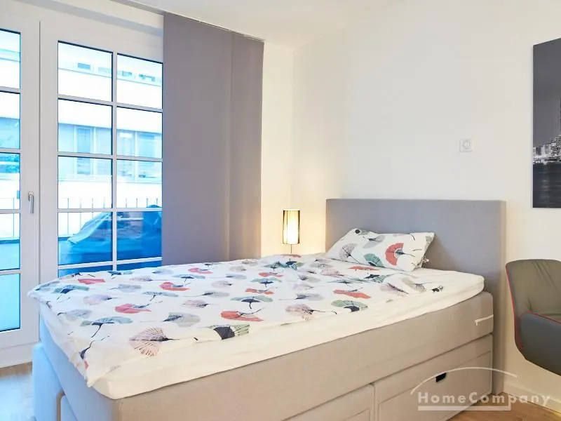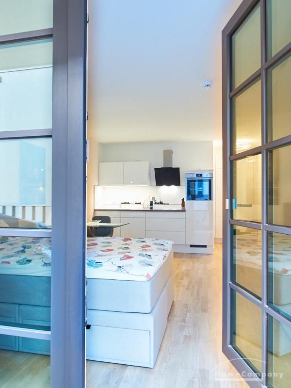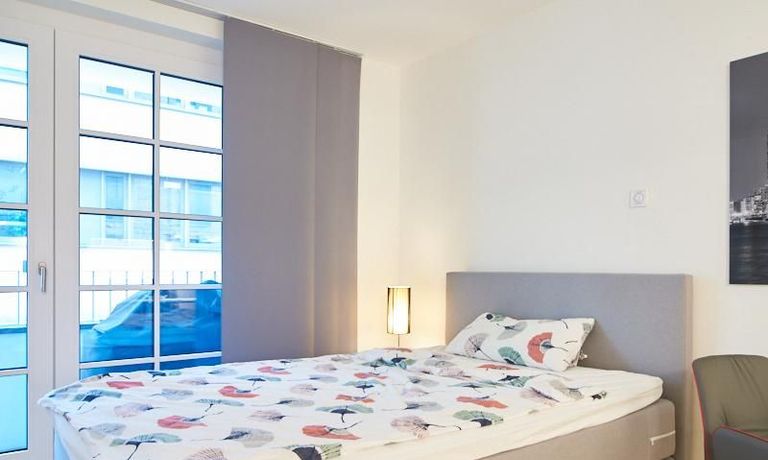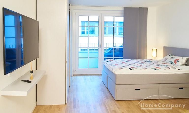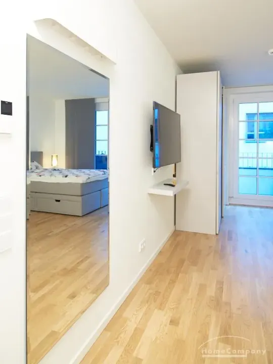 Das perfekt ausgestattete Apartment ist auf dem Gelände des historischen Firmensitzes in den Kühnehöfen gelegen. Innovative Technik bietet besonderen Wohnkomfort. So sind beispielsweise die Fenster mit einer dezenten Spiegeloberfläche versehen um perfekte Privatsphäre zu gewährleisten. Die offene Küche ist mit einem akustisch praktisch nicht wahrnehmbaren Kühlschrank ausgestattet. Angrenzend an die Küche befindet sich ein kleiner Essbereich mit einem modernen Glastisch. Das Apartment ist mit einem 1,40×2,10 m breiten Boxspringbett ausgestattet. Im großen Schiebetürenschrank steht reichlich Stauraum zur Verfügung. Ein besonderes Highlight ist die nur von der Hausgemeinschaft genutzte Dachterrasse. Hier kann man an langen Sommerabenden einen weiten Panoramablick über Hamburg genießen. Viele Hamburger Wahrzeichen, wie der Michel, die tanzenden Türme, die Elbphilharmonie und der Hafen liegen im Blickwinkel. Das Apartment verfügt über ein Wasch / Trockner Kombigerät.