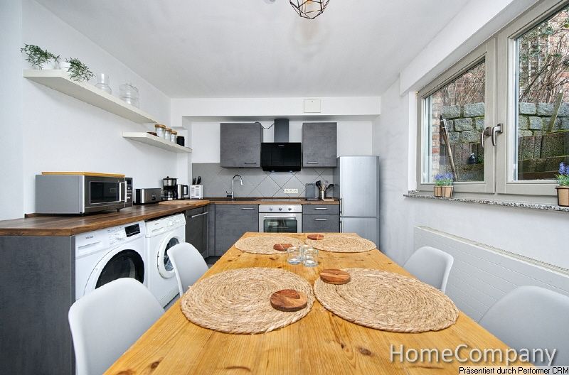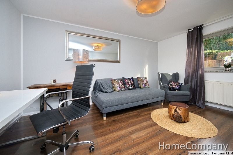 Alles da! Die Wohnung mit separaten Eingang lädt ein, den Komfort der Wohnung und die Ruhe des Umfelds zu genießen. Das Wohnzimmer ist mit Sofa, Sessel und Smart-TV mit zusätzlichem SAT-Empfang ausgestattet. Der Schreibtisch bietet Platz für die Arbeit im Home-Office. Das Schlafzimmer ist mit einem großen Kleiderschrank und einem komfortablen Boxspringbett (180 x 200 cm) möbliert. Die Küche bietet eine Einbauküche mit Waschmaschine, Trockner, Spülmaschine, großer Kühlgefrierkombination, Backofen, Cerankochfeld, einen Esstisch für 4 Personen und eine Ausstattung an Geschirr und Kochutensilien. Das moderne Bad ist mit einer Dusche versehen. Internetzugang (bis 250 Mbit/s) vorhanden.