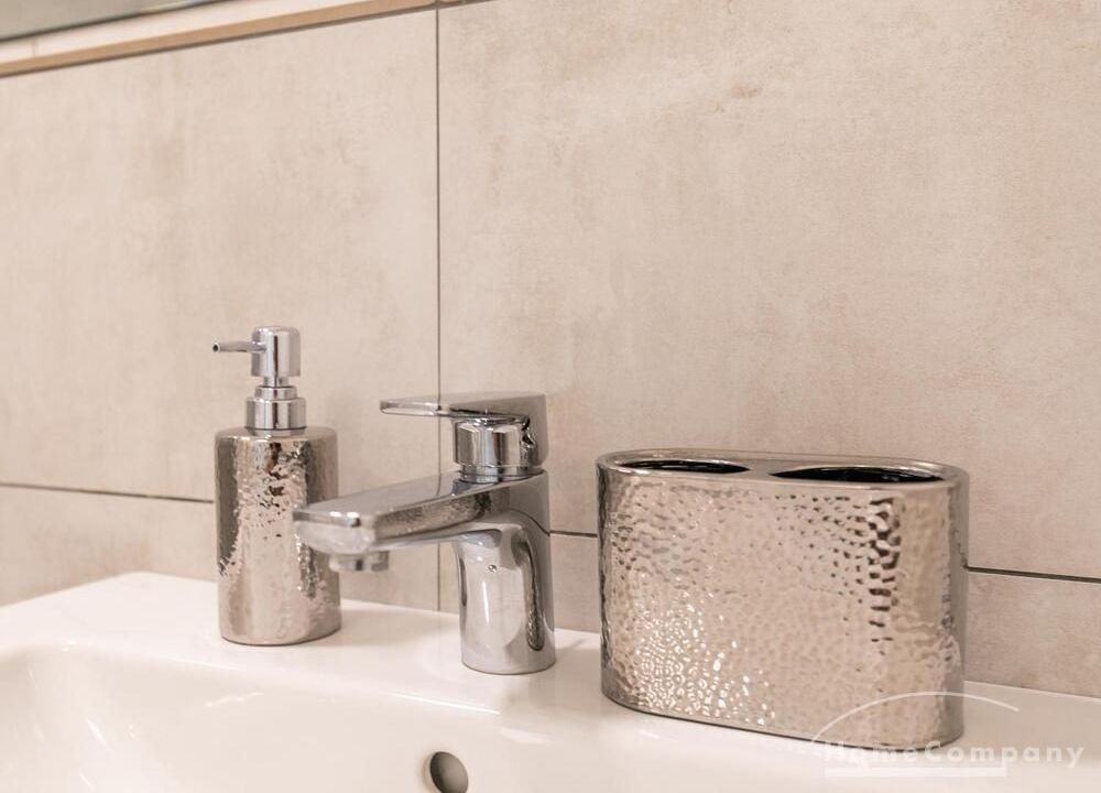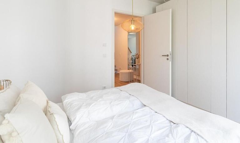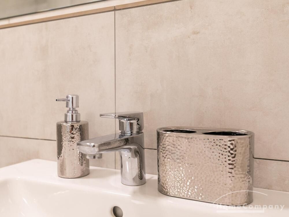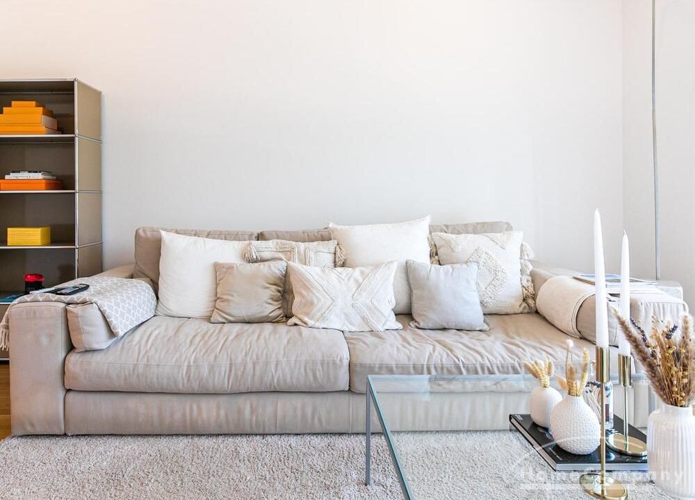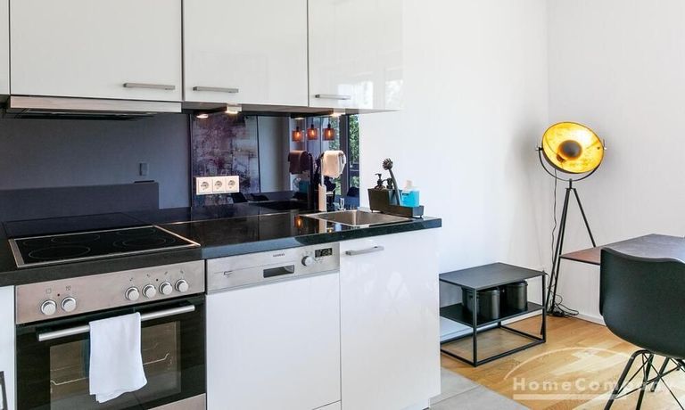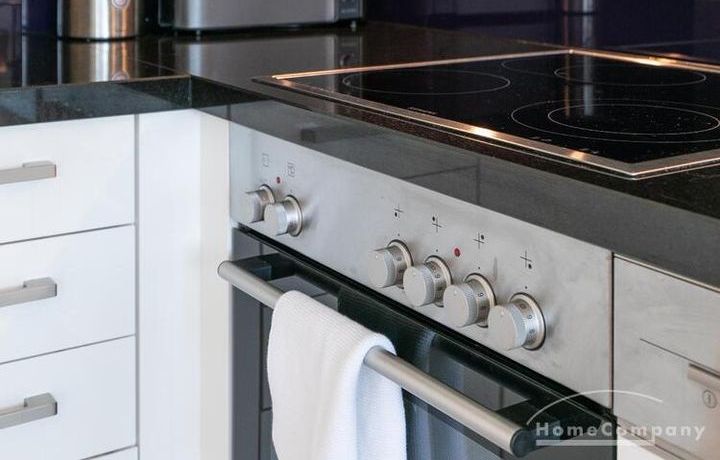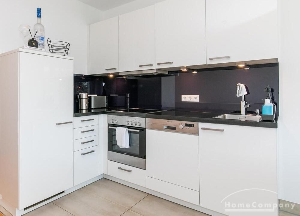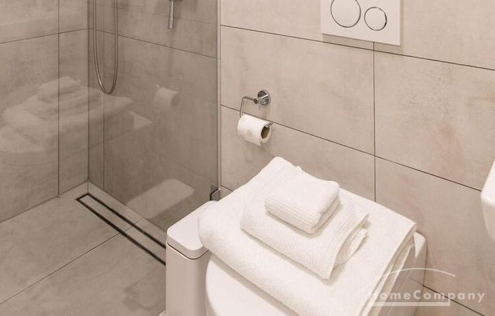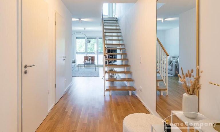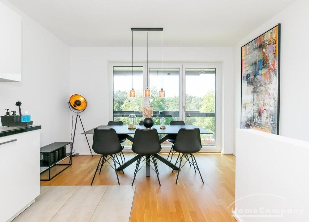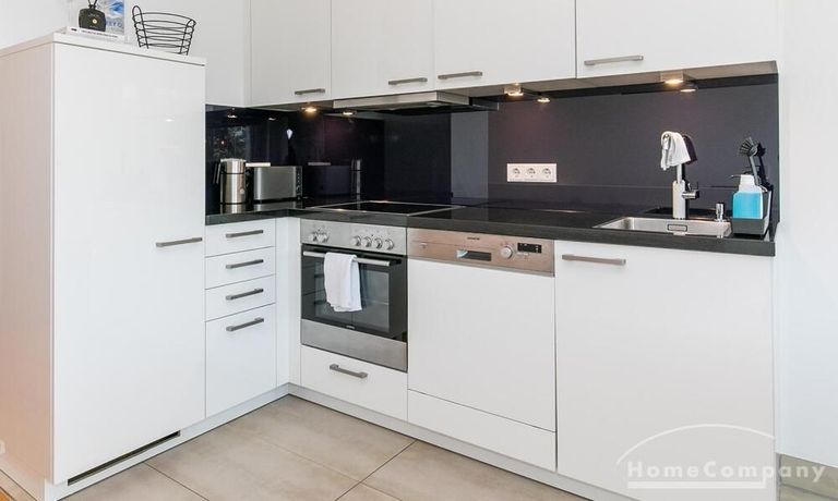 Die Einrichtung ist modern und in dezenten, harmonischen Farben gehalten. Die hochwertige Möblierung mit einigen Designerstücken vermittelt einen exklusiven wohnlichen Gesamteindruck. Die Wohnung ist mit Fußbodenheizung ausgestattet. Drei Balkone bieten reichlich Freifläche zum Entspannen nach Feierabend und am Wochenende. Die hochwertige technische Ausstattung rundet das Bild ab. Eine Bose Bluetooth Musikbox steht zur Verfügung. Der Flatscreen TV ist über Google Chromecast für verschiedene Dienste wie Netflix etc. mit den jeweiligen eigenen Accounts nutzbar. Einige Sender können auch ohne die eigenen Zugänge empfangen werden. Das Internet ist über Glasfaser mit 1000 MBit eingerichtet. Weiterhin steht ein Miele Trockner zur Verfügung.