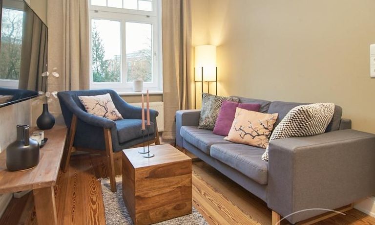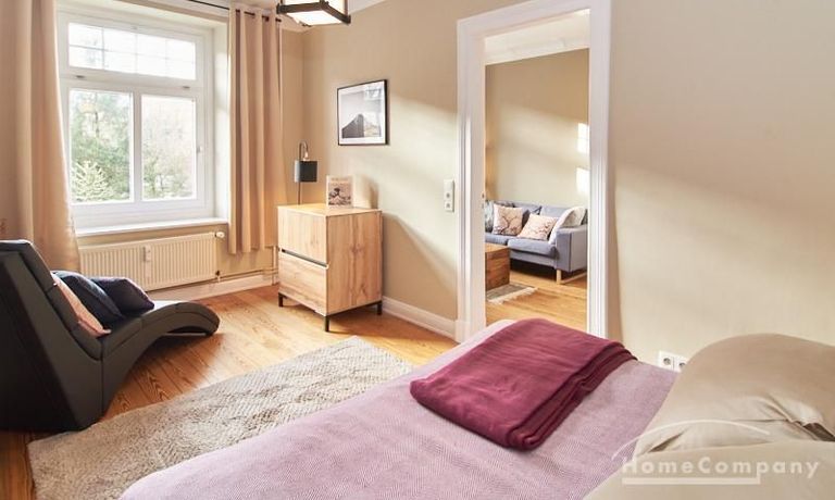 Die 2-Zimmer-Wohnung ist in einer ruhigen Seitenstraße am UKE gelegen und bietet neben einer großen Wohnküche, dem Wohn- und Schlafzimmer einen kleinen Arbeitsbereich für das Homeoffice. Das Schlafzimmer ist mit einem 1,60 m breiten Doppelbett und einen Ruhebereich mit Relaxliege ausgestattet. Vermietung nur an eine Person.