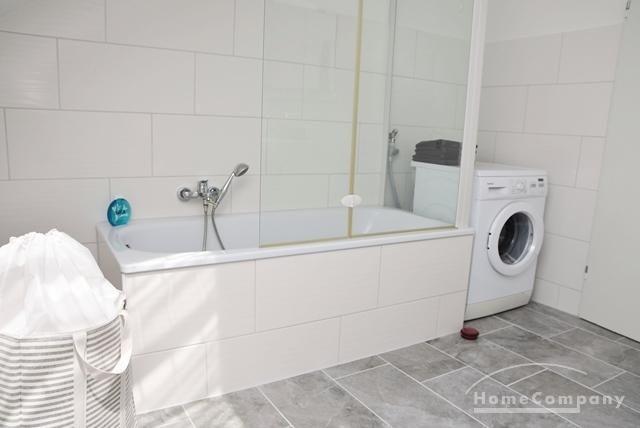 Großes, neues Wannenbad/WC mit Waschmaschine.