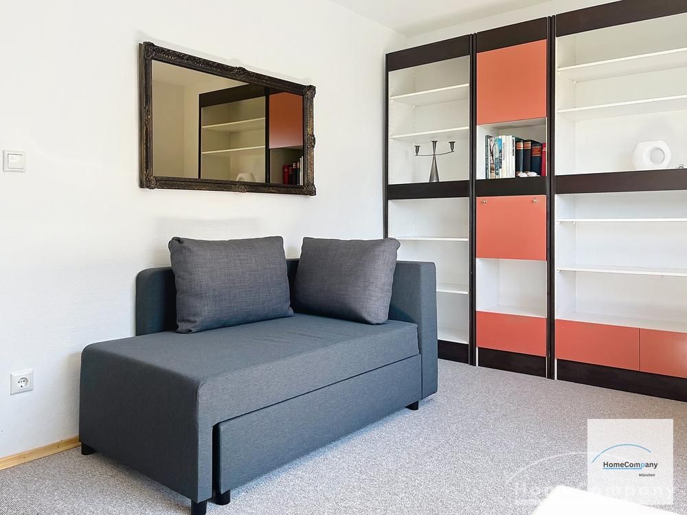 Das Schlafzimmer verfügt über ein komfortables Doppelbett und einen großen Kleiderschrank. Ein zusätzliches Gästezimmer bietet ein Schlafsofa und einen Schreibtisch – perfekt als Arbeits- oder Gästezimmer nutzbar.