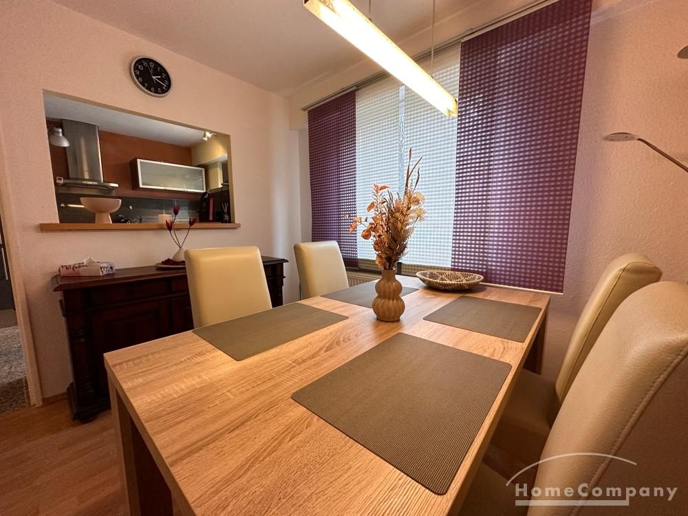 Diese hochwertig ausgestattete Wohnung mit Balkon befindet sich auf dem Saarbrücker-Eschberg – Nähe Freibad -., in einem Zweifamilienhaus. Auf ca. 70 m² und 4 Zimmern (Wohnzimmer, Schlafzimmer, Arbeitszimmer mit Schreibtisch und Esszimmer ), Abstellraum und Balkon (überdacht) bietet diese Wohnung eine gute Hotelalternative mit Wohlfühlcharakter und guter Busanbindung.