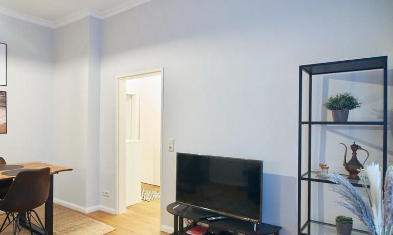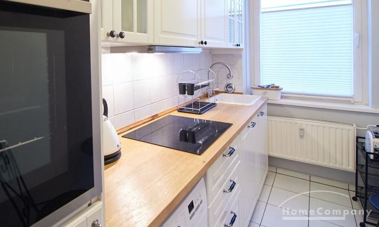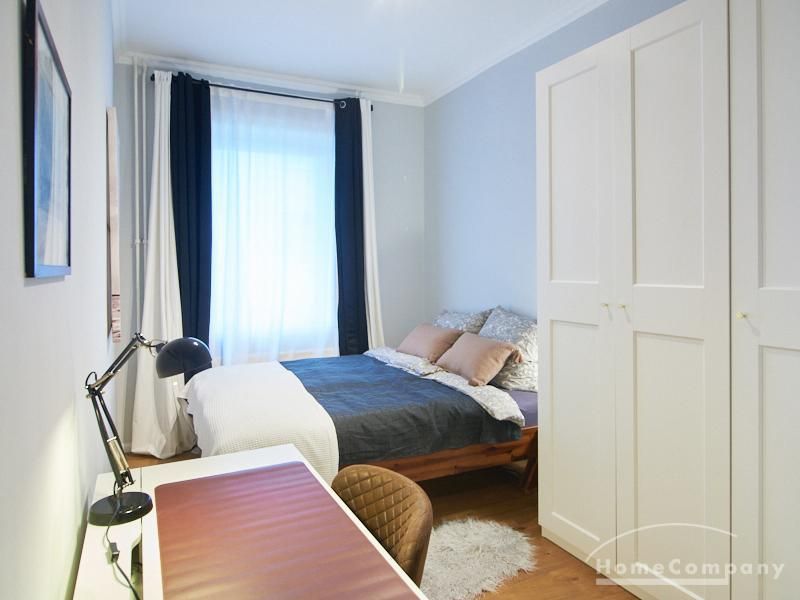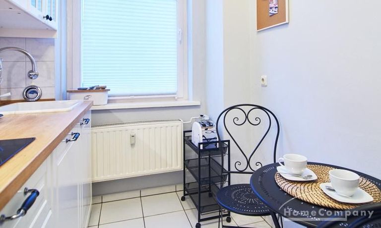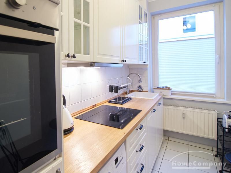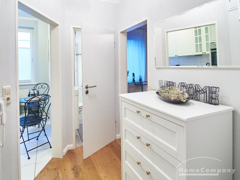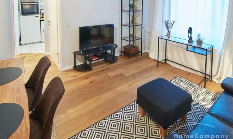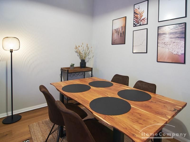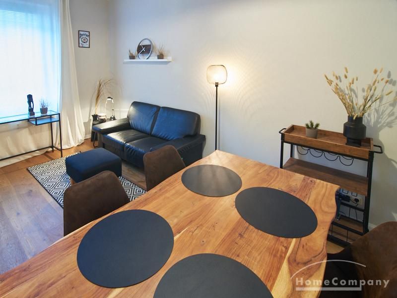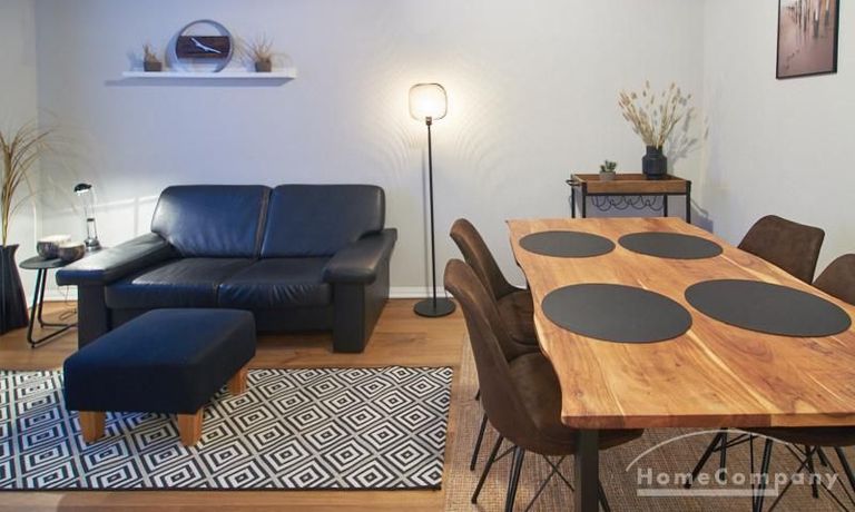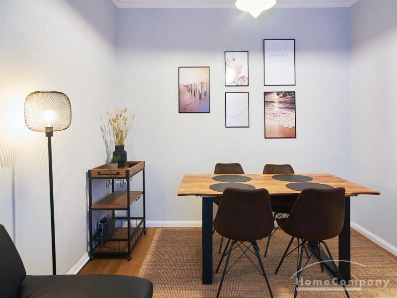 Die Wohnung ist sehr ruhig in einem Innenhof gelegen. Im Wohnzimmer stehen ein Sofabereich und ein Esstisch mit vier Stühlen und einer Sitzbank zu Verfügung. Das Schlafzimmer ist mit einem 180×200 cm Doppelbett und einem schwarzen, höhenverstellbaren Schreibtisch ausgestattet. Sehr gute und vielfältige Einkaufsmöglichkeiten sowie Restaurants, Cafés befinden sich in der unmittelbaren Umgebung. Vor der Haustür ist ein Fahrradstellplatz. Die U-Bahn-Station Lutterothstraße ist in einer Minute erreichbar.