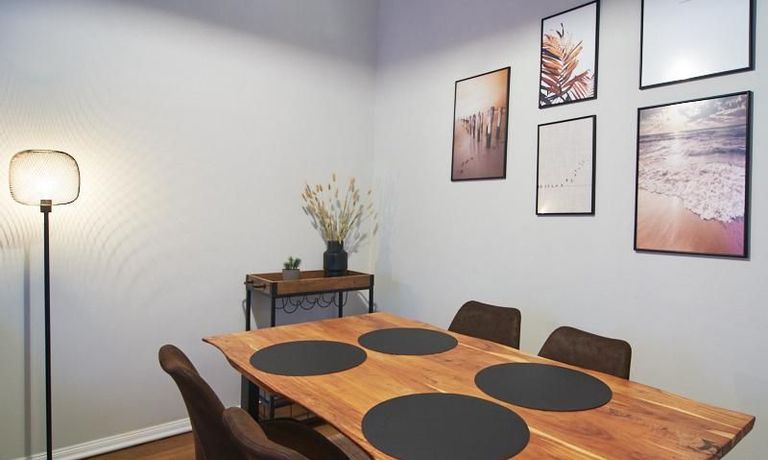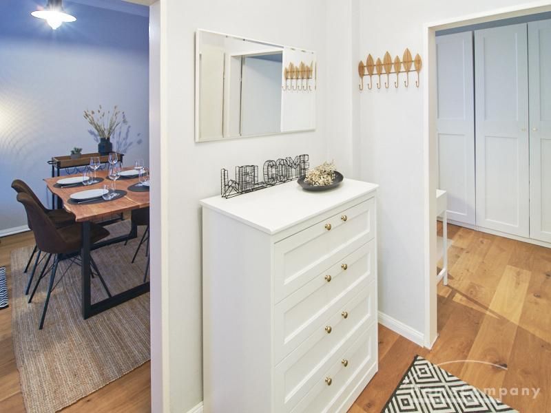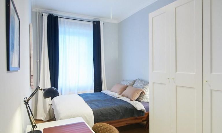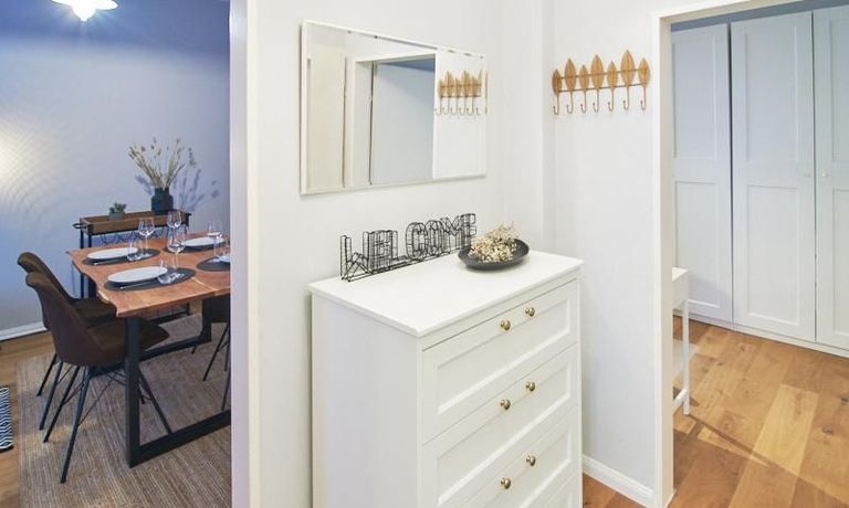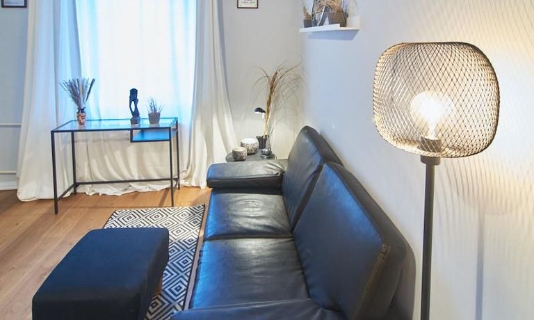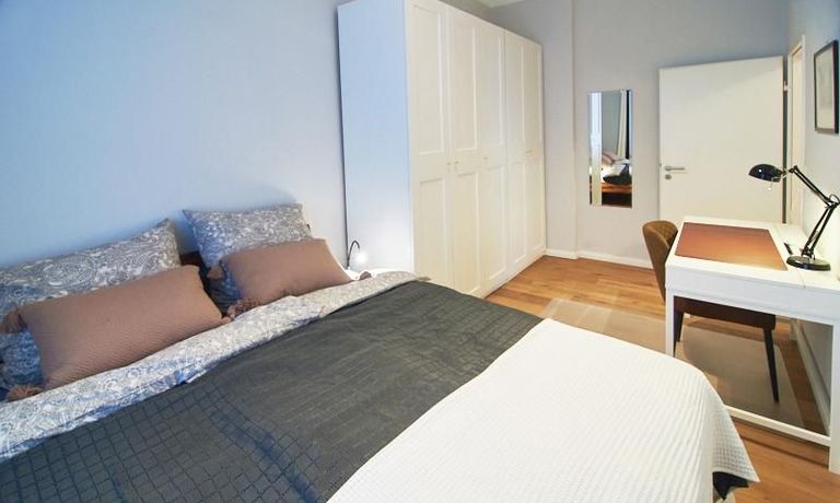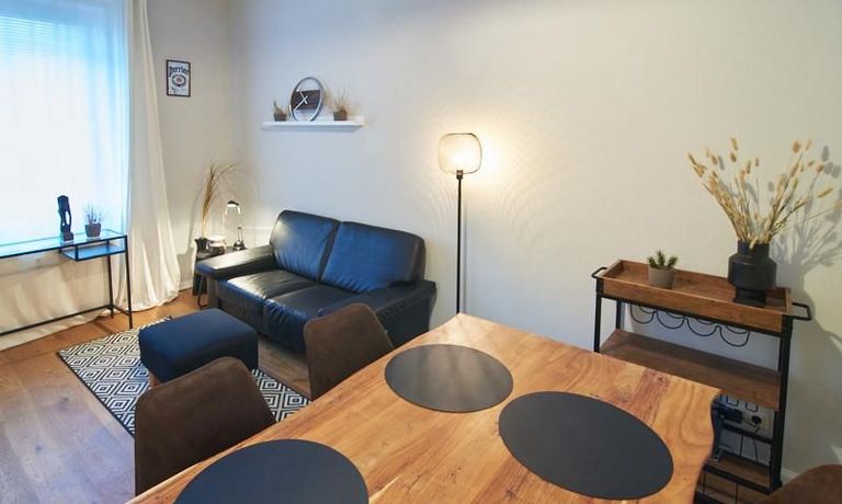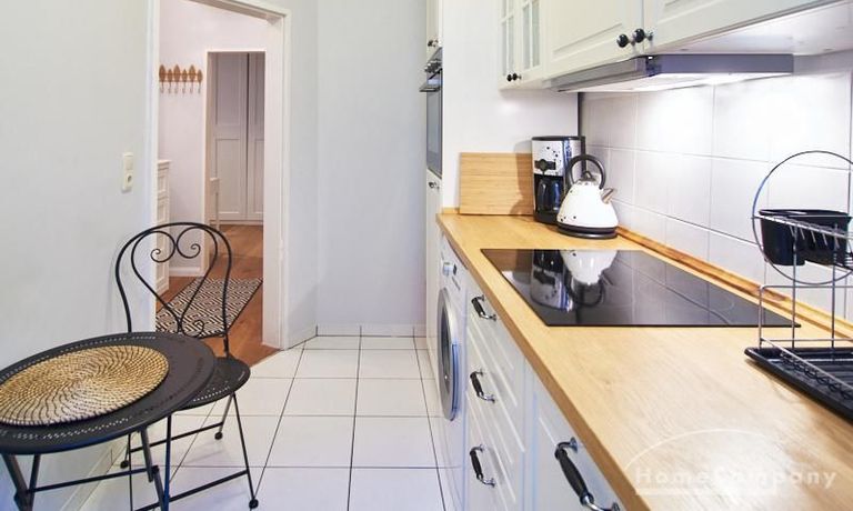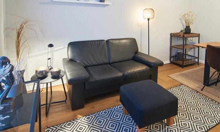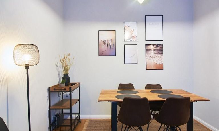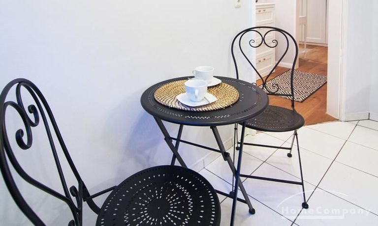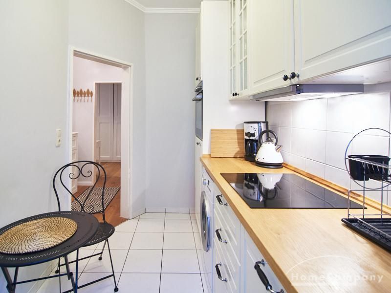 Die Wohnung ist sehr ruhig in einem Innenhof gelegen. Im Wohnzimmer stehen ein Sofabereich und ein Esstisch mit vier Stühlen und einer Sitzbank zu Verfügung. Das Schlafzimmer ist mit einem 180×200 cm Doppelbett und einem schwarzen, höhenverstellbaren Schreibtisch ausgestattet. Sehr gute und vielfältige Einkaufsmöglichkeiten sowie Restaurants, Cafés befinden sich in der unmittelbaren Umgebung. Vor der Haustür ist ein Fahrradstellplatz. Die U-Bahn-Station Lutterothstraße ist in einer Minute erreichbar.