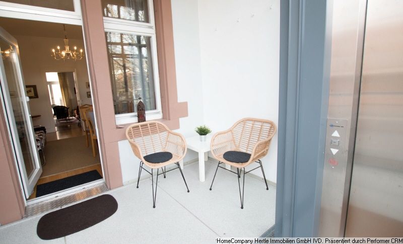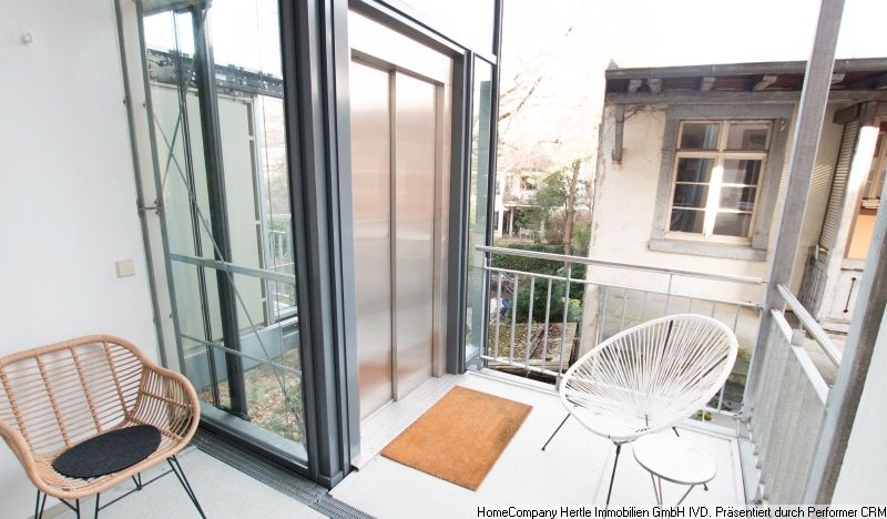 Zugang über großen Balkon mit Aufzug in die Wohnung