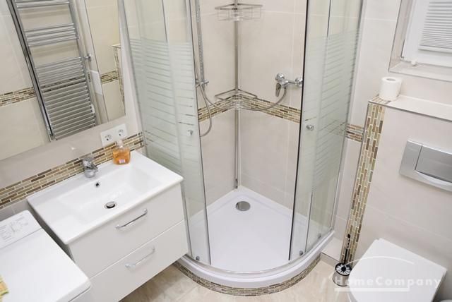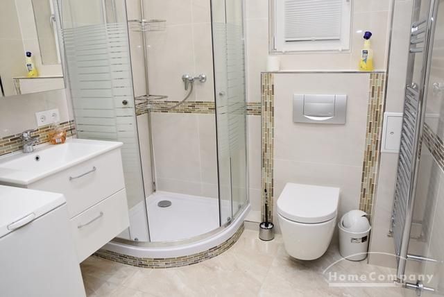 Modernes Duschbad/WC mit Waschmaschine.