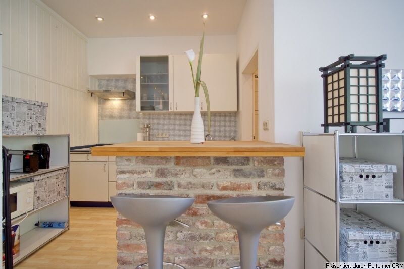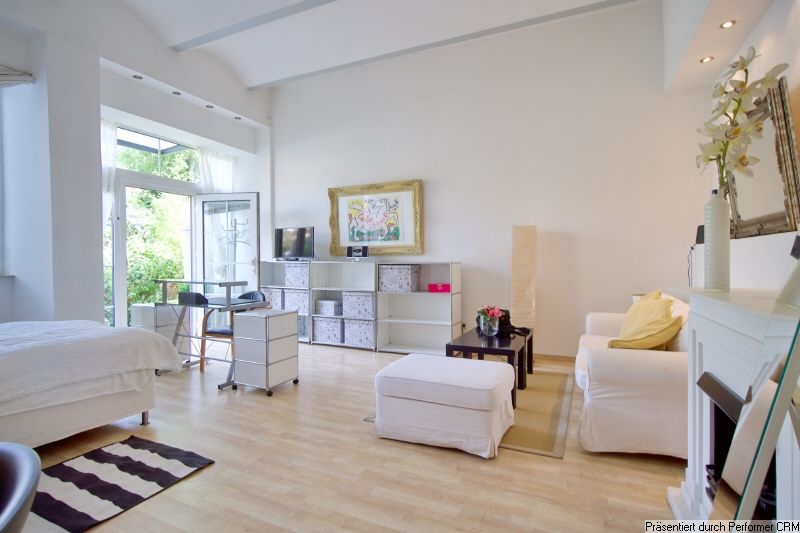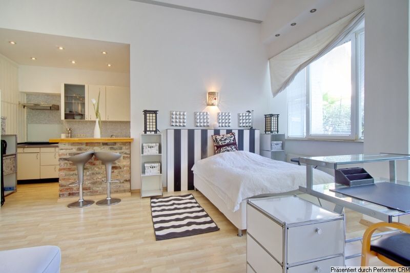 Diese schöne möblierte Apartmentwohnung befindet sich in einem ansprechend gestalteten Hinterhof mit mediterranem Flair. Ein PKW-Stellplatz liegt im vorderen Bereich, getrennt von der Wohnanlage, und kann bei Bedarf gegen einen Aufpreis von € 90 pro Monat angemietet werden. Über eine kleine, wunderschön bepflanzte Terrasse betritt man einen großen und hellen loftartigen Raum. Hier wurden die Bereiche Wohnen, Arbeiten, Entspannen und Schlafen sowie die offene Küche perfekt aufgeteilt. Das Badezimmer mit Rainshower und Waschtrockner befindet sich am Ende des Raumes. Es handelt sich um eine Nichtraucherwohnung.