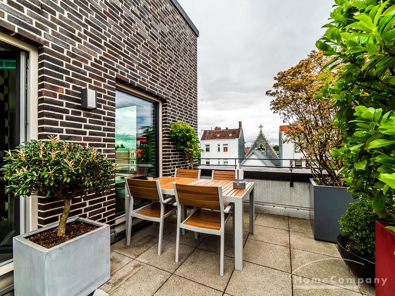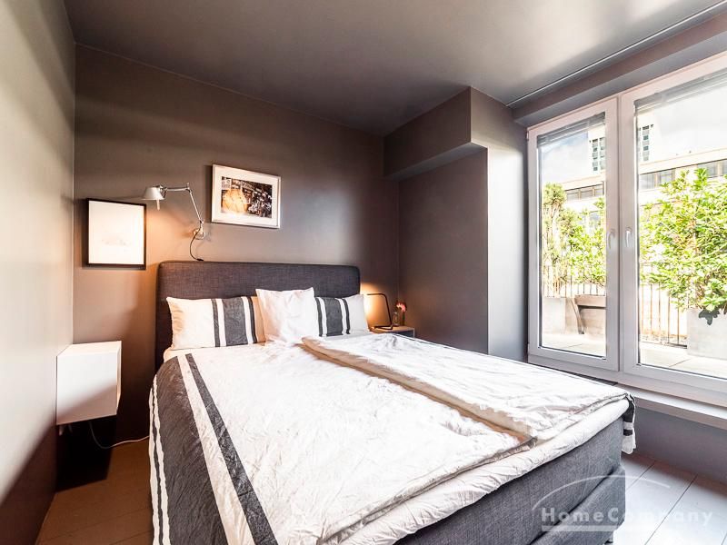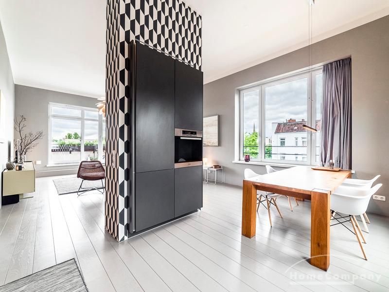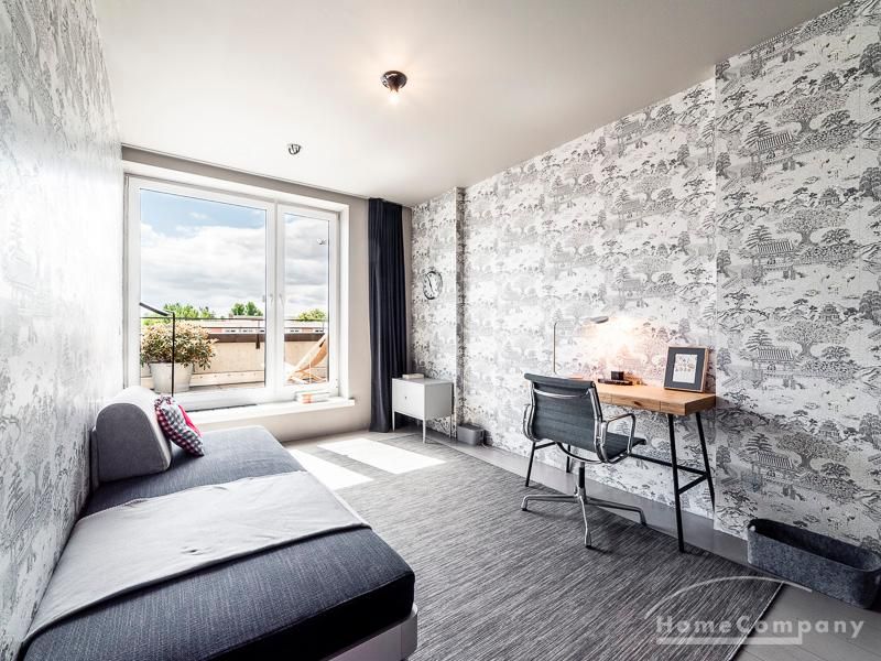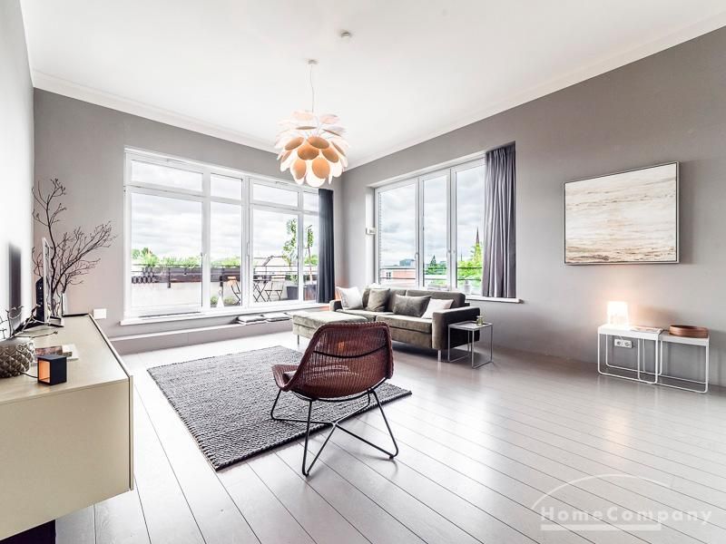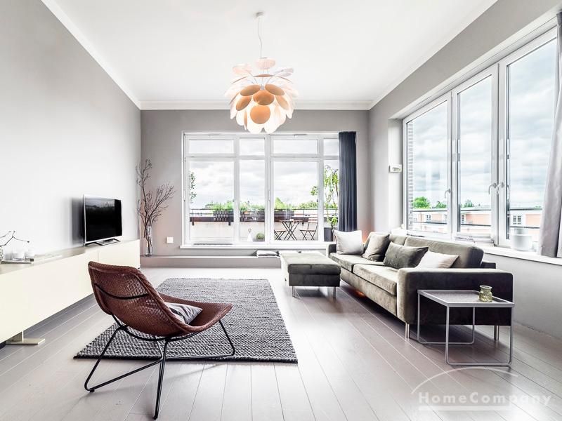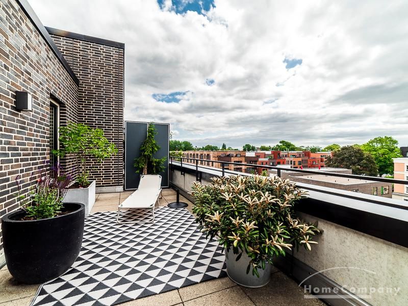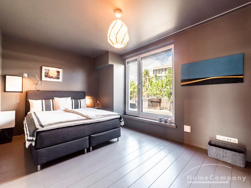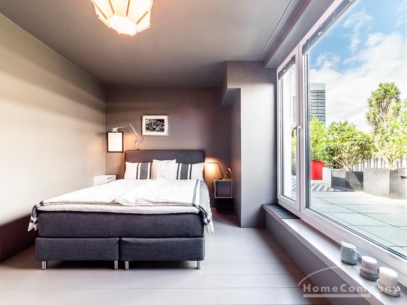 Luxuriöse Ausstattung und perfektes Design bestimmen den Stil der Wohnung und ergeben ein cool- komfortables Wohlfühlambiente. Grauer Designboden in Verbindung mit modernen Tapetenmustern und ruhigen Wandflächen stehen im Kontrast zu einzelnen Bildern und einem warmen Holzton in der durchgehenden Maserung der Küchenfront. Weitere Küchenelemente sind beinahe unsichtbar in eine Säule integriert. Der Wohnbereich ist sehr modern eingerichtet. Ein HD-TV (50 Zoll) steht zur Verfügung. Highspeedinternet 100 Mbit. Die beiden reich bepflanzten Dachterrassen sind vom großen Wohnraum mit Küche und Essbereich aus erreichbar. Eine automatische Bewässerungsanlage versorgt die Pflanzen, so dass man die kleine grüne Oase unbeschwert genießen kann. Das Schlafzimmer ist mit einem 1,60 m breiten Doppelbett ausgestattet. Zusätzlich steht ein Gästezimmer mit einem 0,90 m breiten Bett zur Verfügung. Ein großer Tiefgaragenstellplatz ist im Mietpreis inbegriffen.Vor dem Mietbeginn ist ein Reinigungsdeposit in Höhe von 5,50 €/m², jedoch mindestens 250,00 €, zu entrichten.Virtuelle Wohnungsbesichtigung mit 360° Rundumansichten: http://panocreator.com/view/gallery/id/VRKMTAngaben zum Energieausweis nach § 16a EnEV 2014: Art des Energieausweises: Energiebedarfsausweis Wert des Endenergiebedarfs: 53,5 kWh/(m²*a)Wesentlicher Energieträger für die Heizung des Gebäudes: FernwärmeGebäudebaujahr: 2010