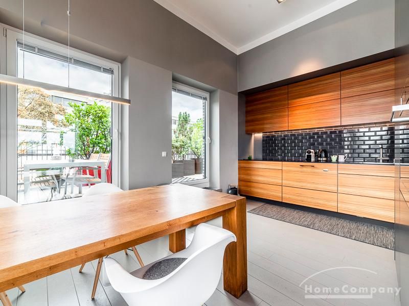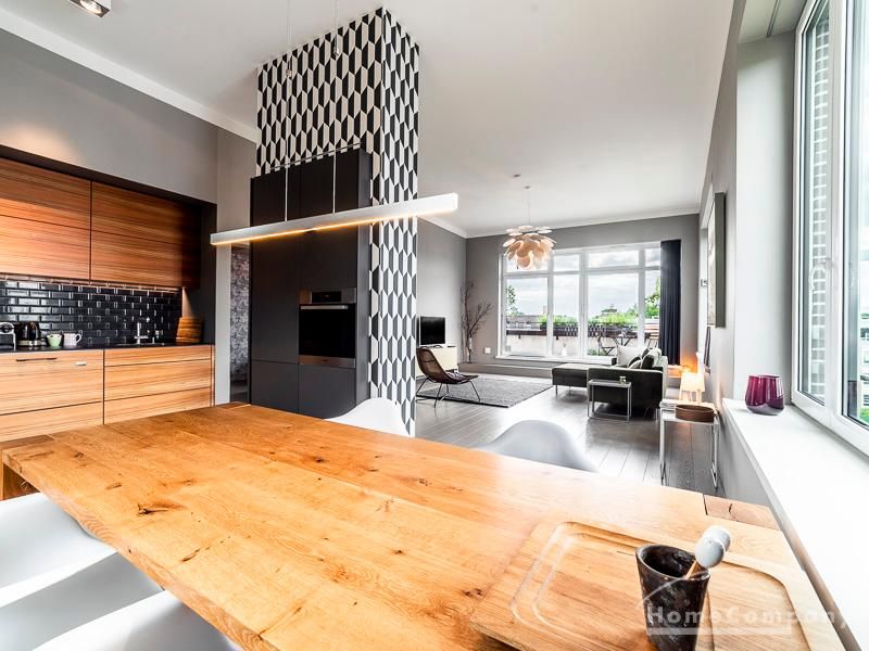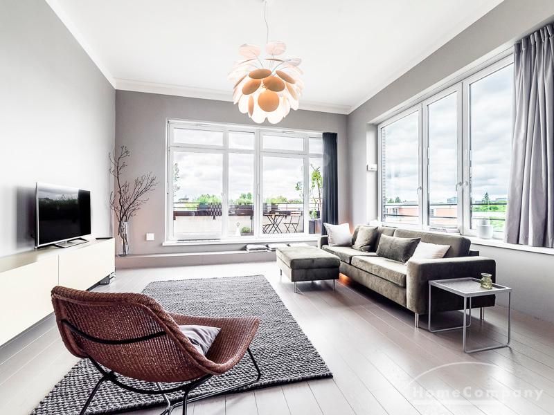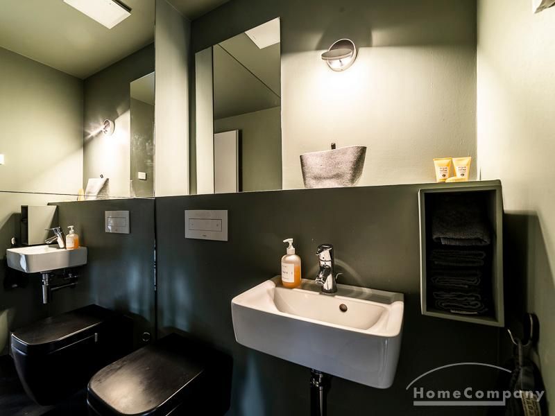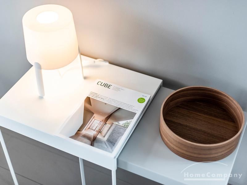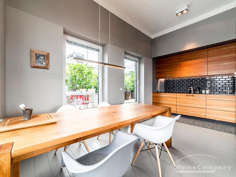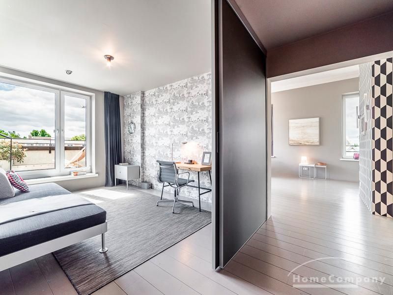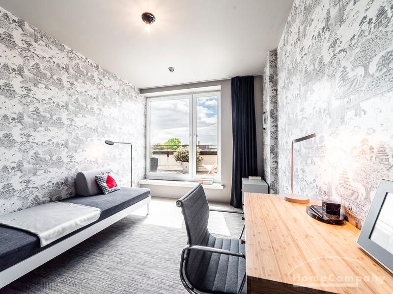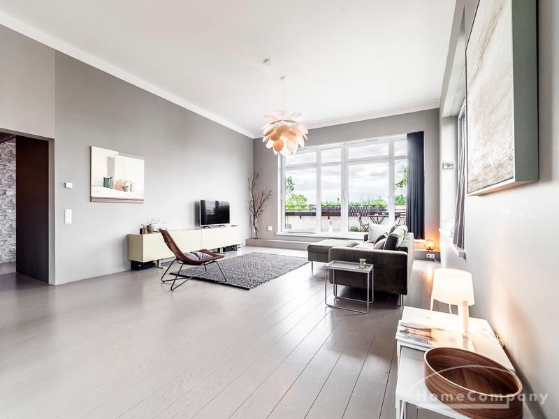 Luxuriöse Ausstattung und perfektes Design bestimmen den Stil der Wohnung und ergeben ein cool- komfortables Wohlfühlambiente. Grauer Designboden in Verbindung mit modernen Tapetenmustern und ruhigen Wandflächen stehen im Kontrast zu einzelnen Bildern und einem warmen Holzton in der durchgehenden Maserung der Küchenfront. Weitere Küchenelemente sind beinahe unsichtbar in eine Säule integriert. Der Wohnbereich ist sehr modern eingerichtet. Ein HD-TV (50 Zoll) steht zur Verfügung. Highspeedinternet 100 Mbit. Die beiden reich bepflanzten Dachterrassen sind vom großen Wohnraum mit Küche und Essbereich aus erreichbar. Eine automatische Bewässerungsanlage versorgt die Pflanzen, so dass man die kleine grüne Oase unbeschwert genießen kann. Das Schlafzimmer ist mit einem 1,60 m breiten Doppelbett ausgestattet. Zusätzlich steht ein Gästezimmer mit einem 0,90 m breiten Bett zur Verfügung. Ein großer Tiefgaragenstellplatz ist im Mietpreis inbegriffen.Vor dem Mietbeginn ist ein Reinigungsdeposit in Höhe von 5,50 €/m², jedoch mindestens 250,00 €, zu entrichten.Virtuelle Wohnungsbesichtigung mit 360° Rundumansichten: http://panocreator.com/view/gallery/id/VRKMTAngaben zum Energieausweis nach § 16a EnEV 2014: Art des Energieausweises: Energiebedarfsausweis Wert des Endenergiebedarfs: 53,5 kWh/(m²*a)Wesentlicher Energieträger für die Heizung des Gebäudes: FernwärmeGebäudebaujahr: 2010